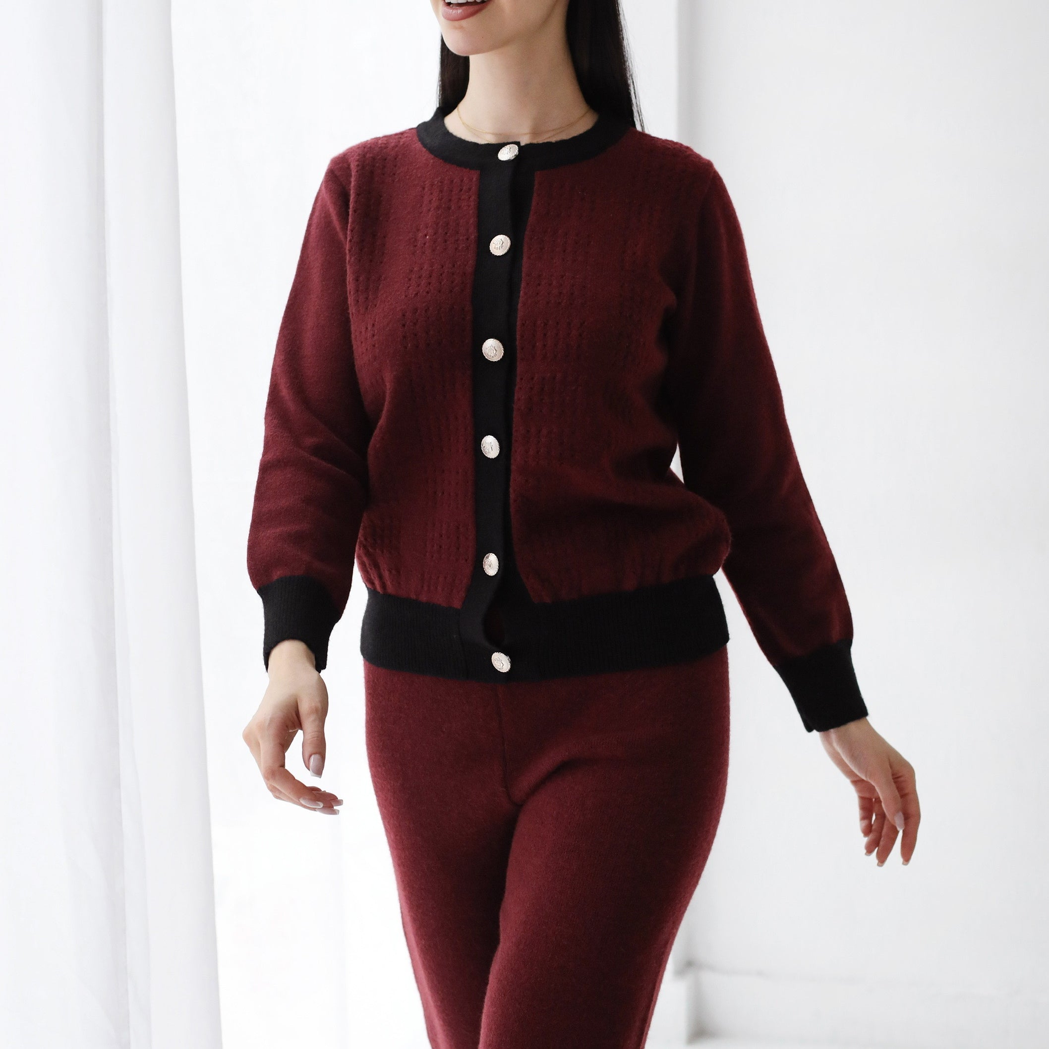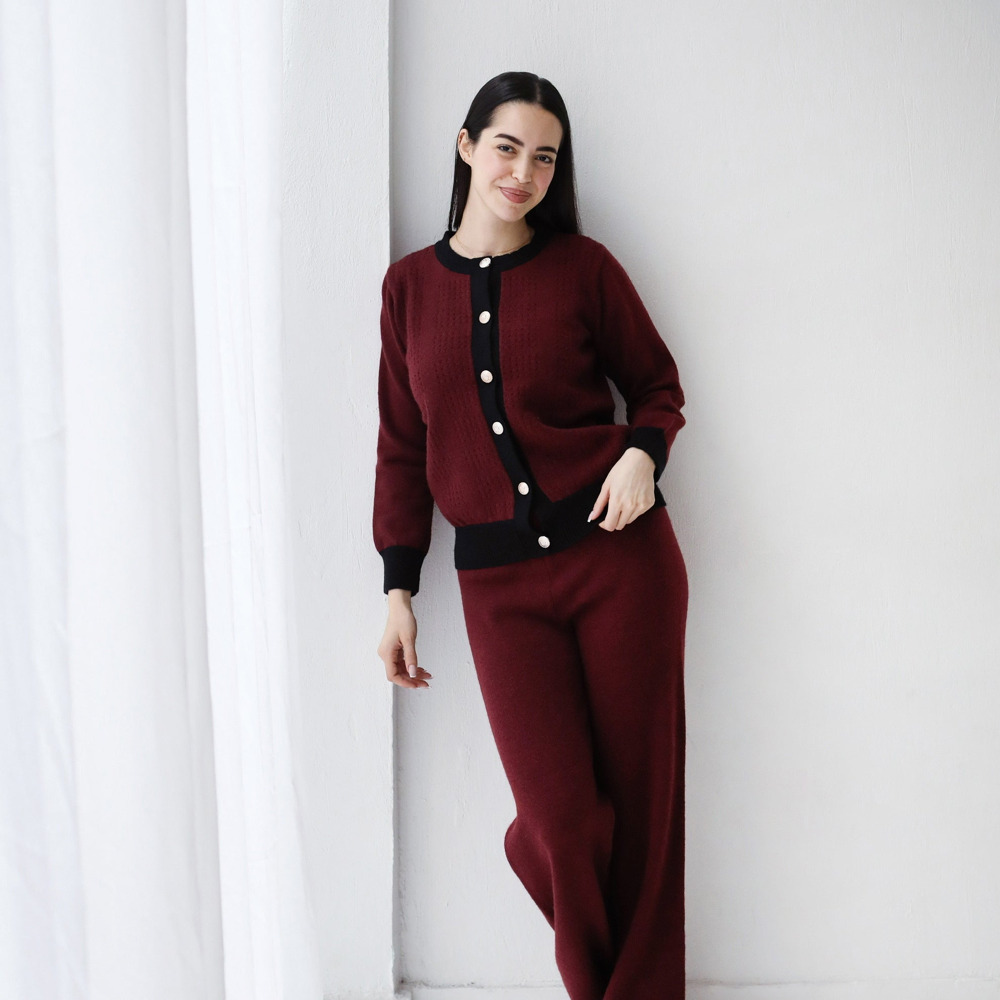 Sleek Comfort Knit Set- Burgundy