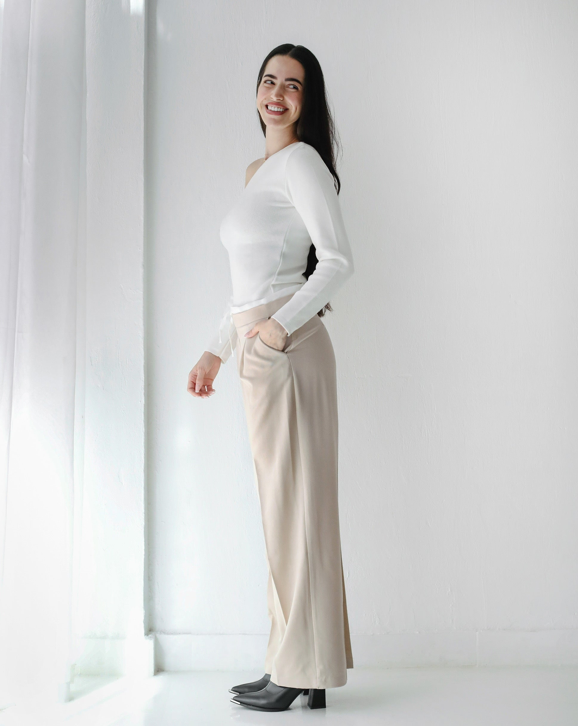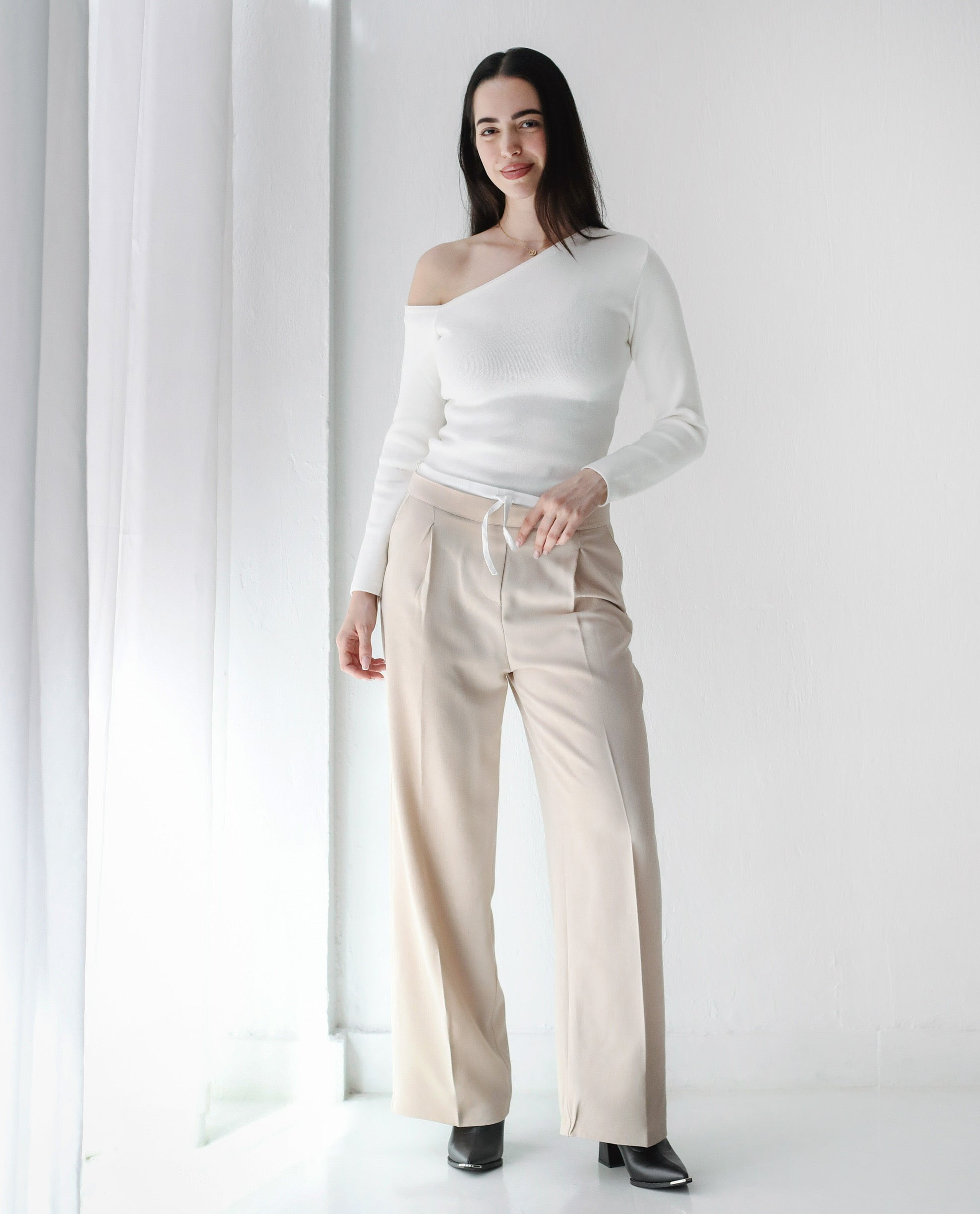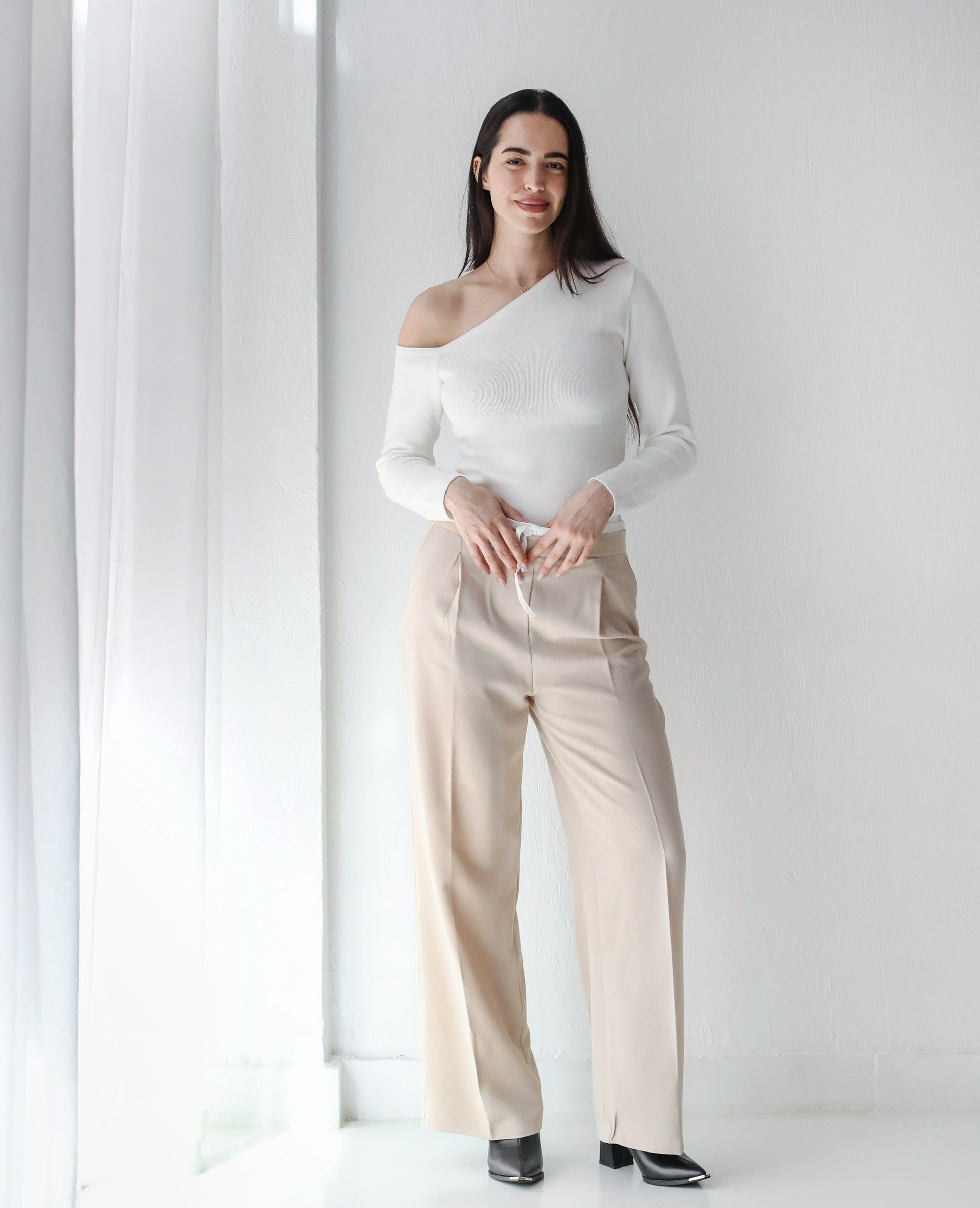 Loose Fit Pants-Light beige