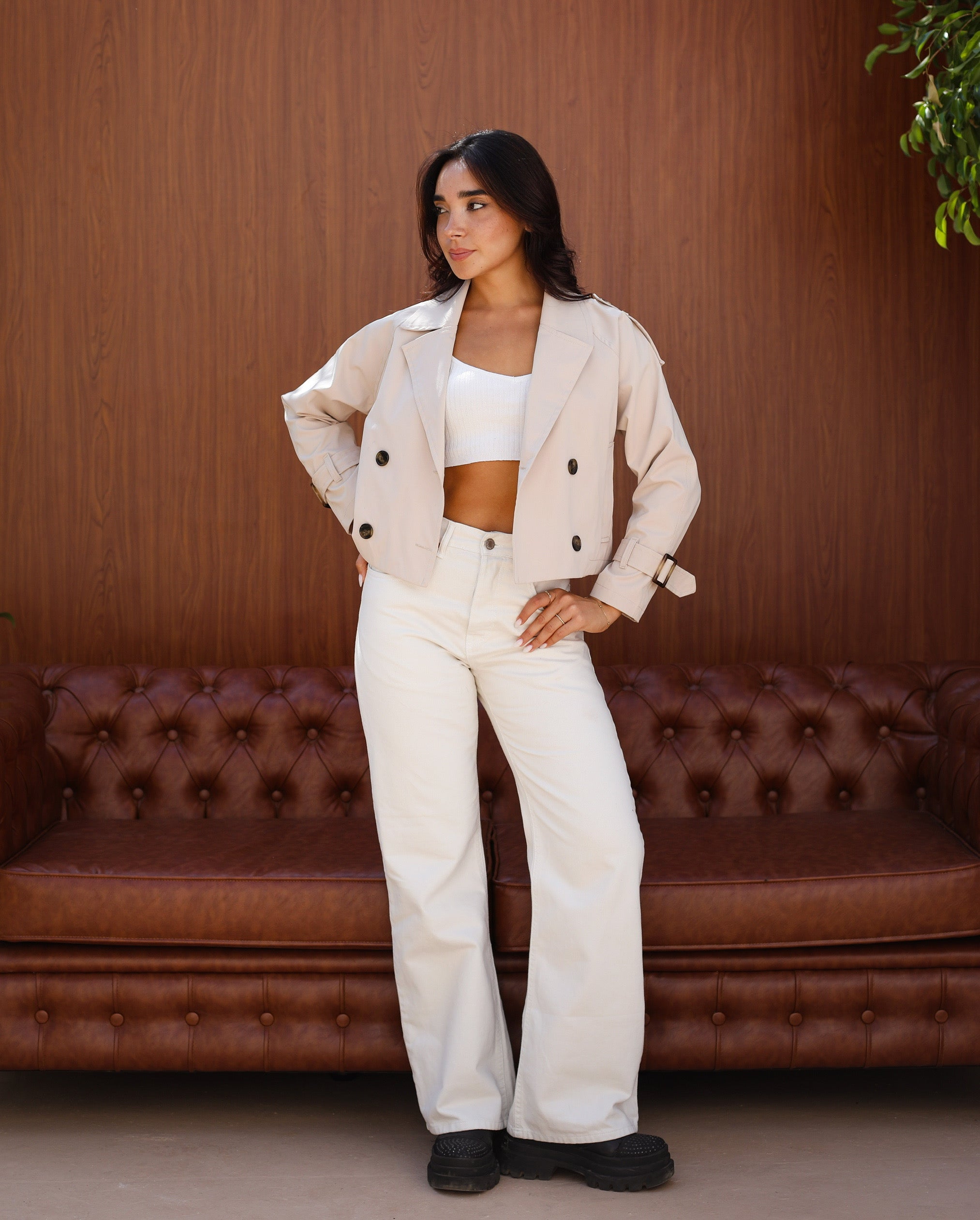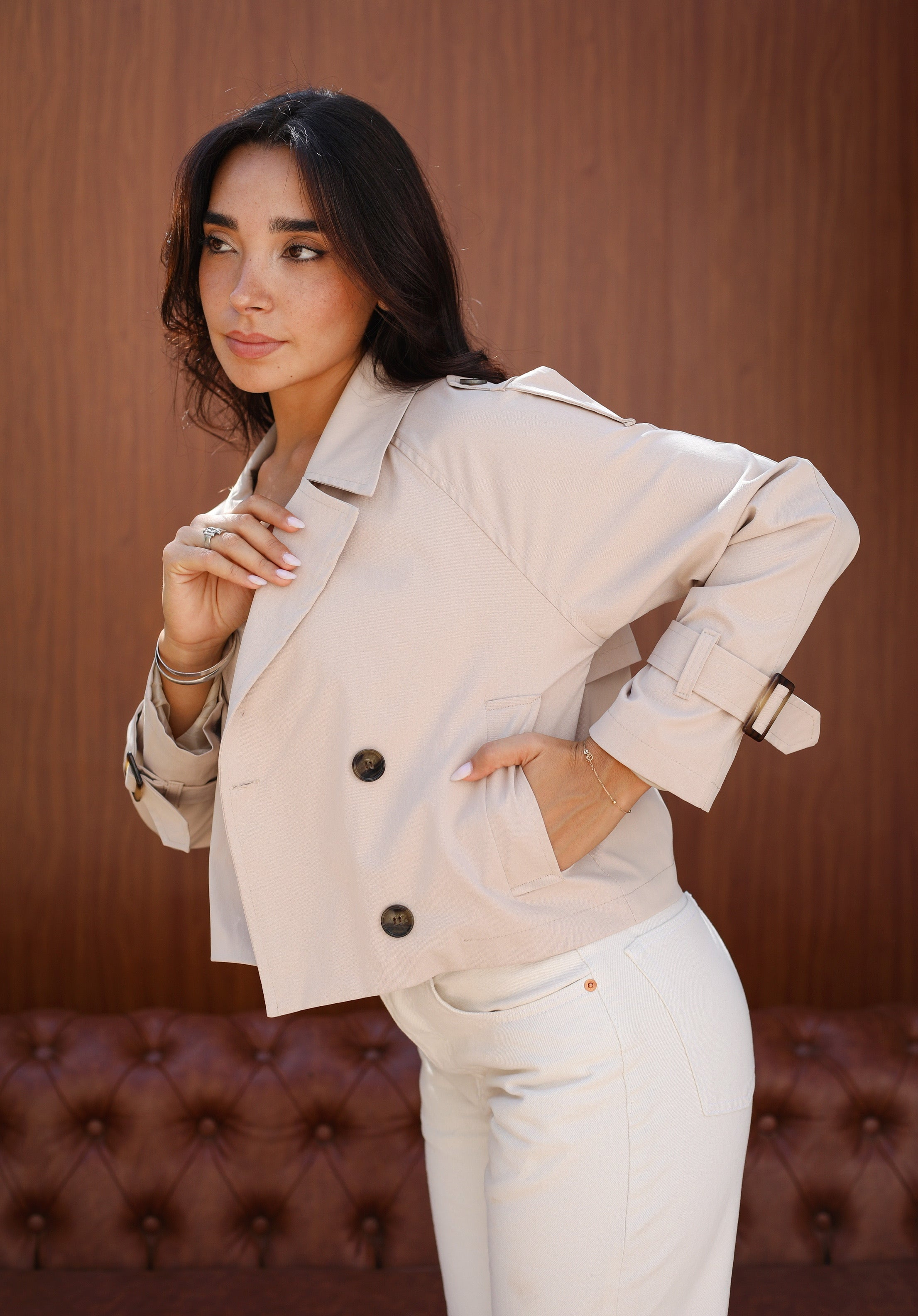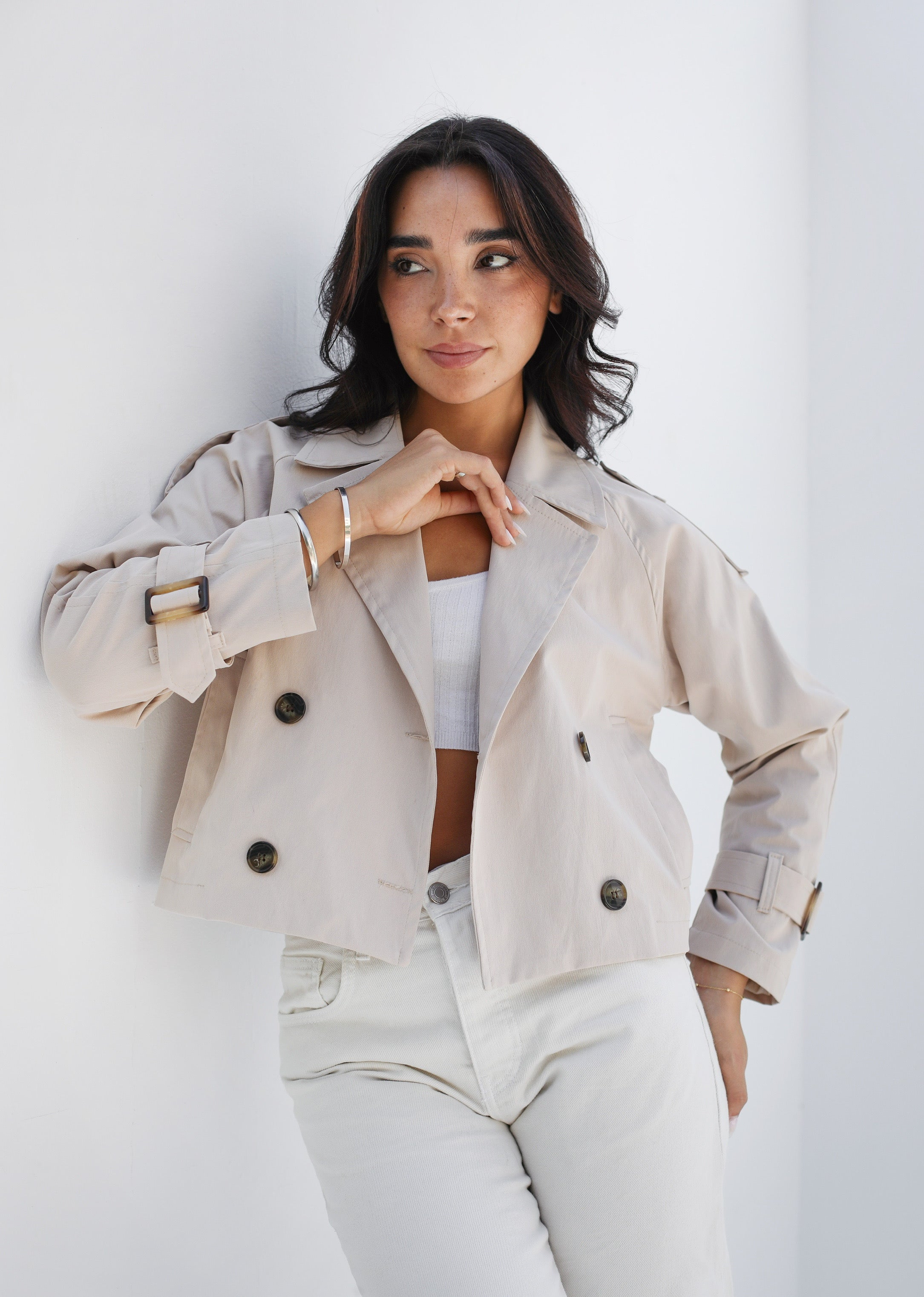 Cropped trench coat - beige