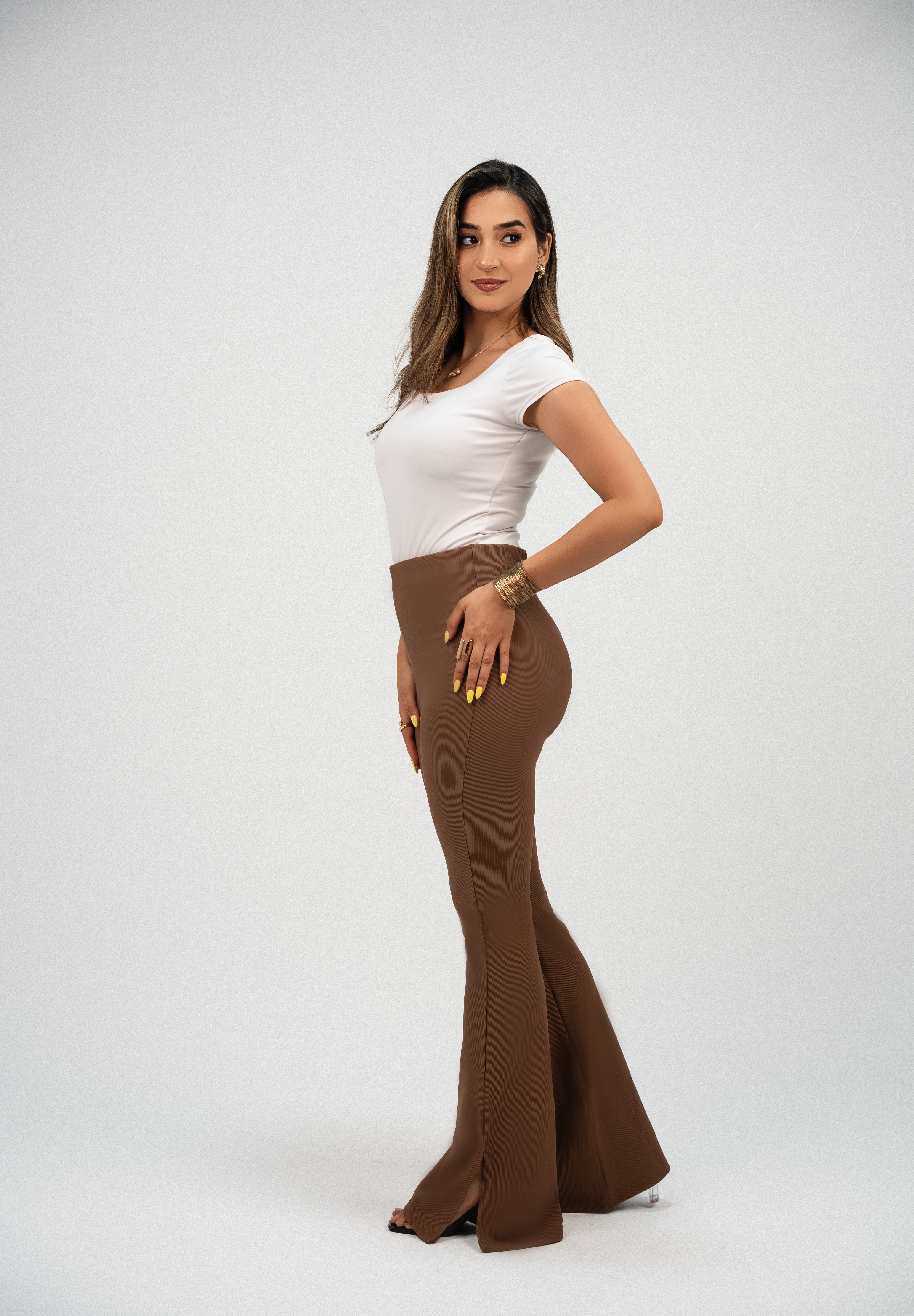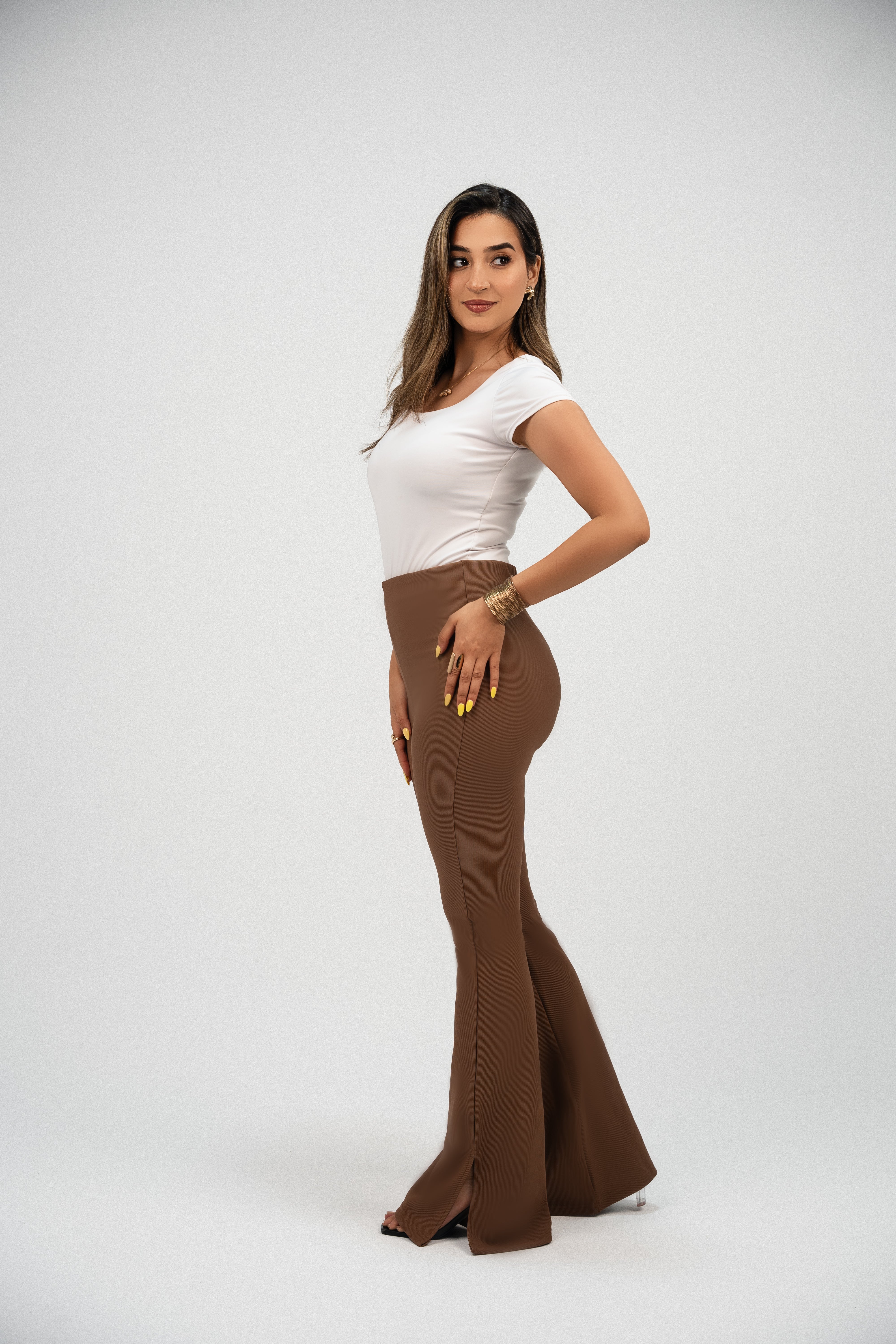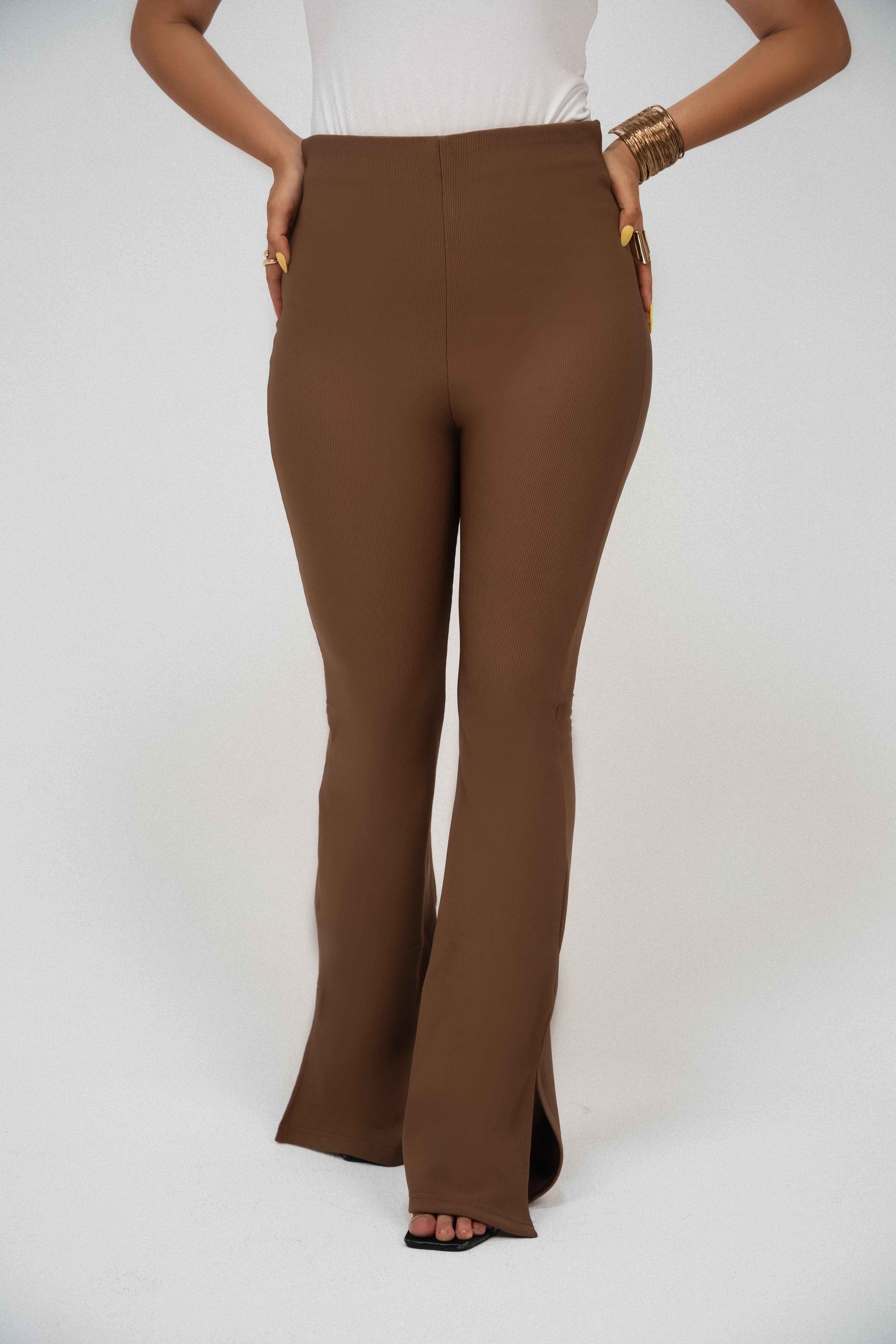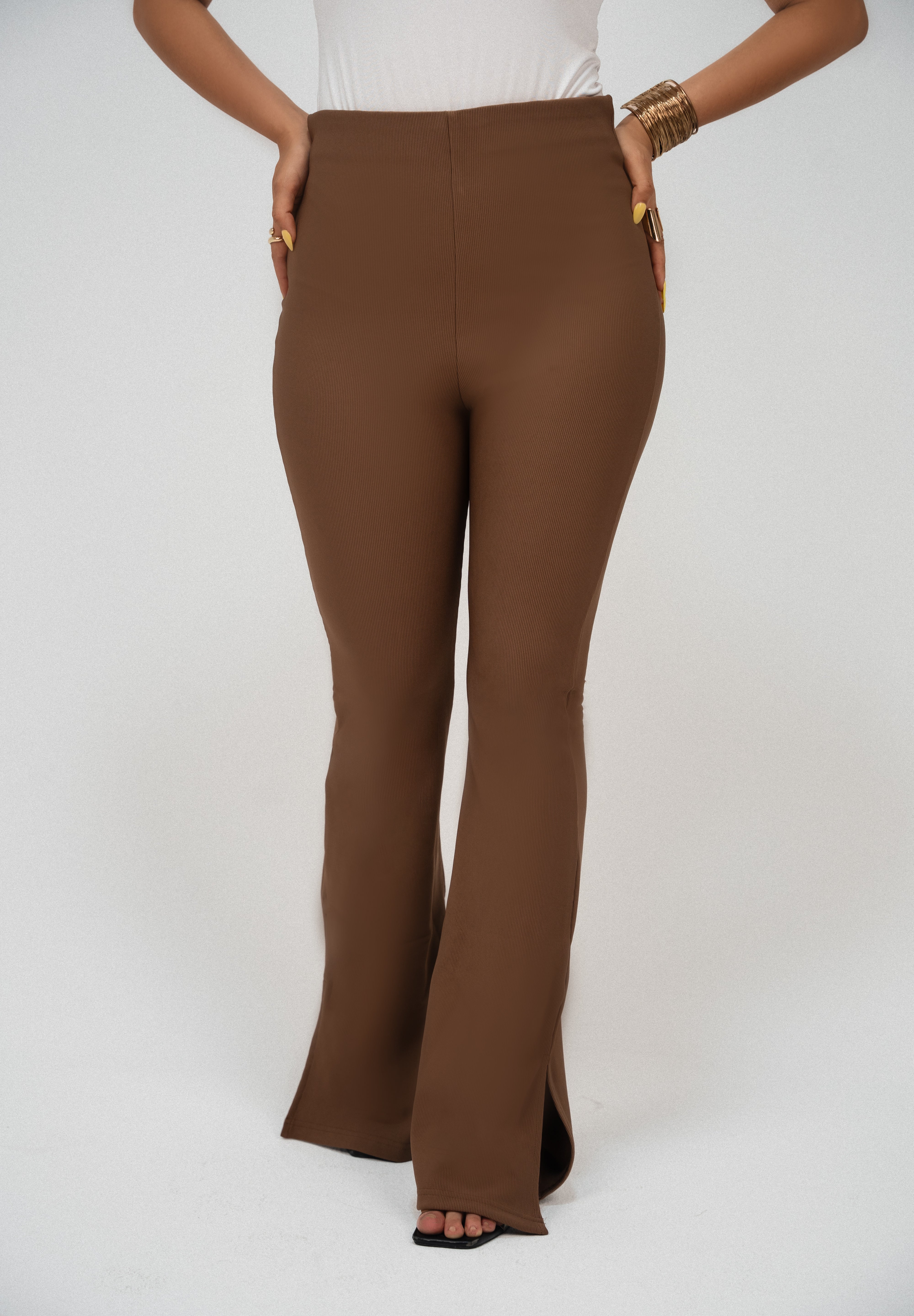 High-Waisted Flare pants-Caramel