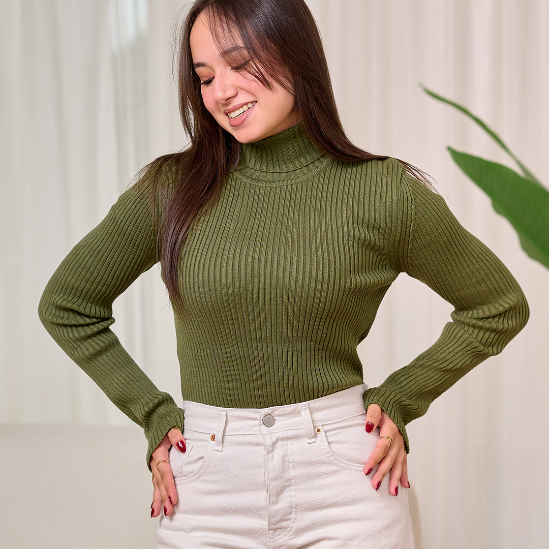 High neckline top - olive
