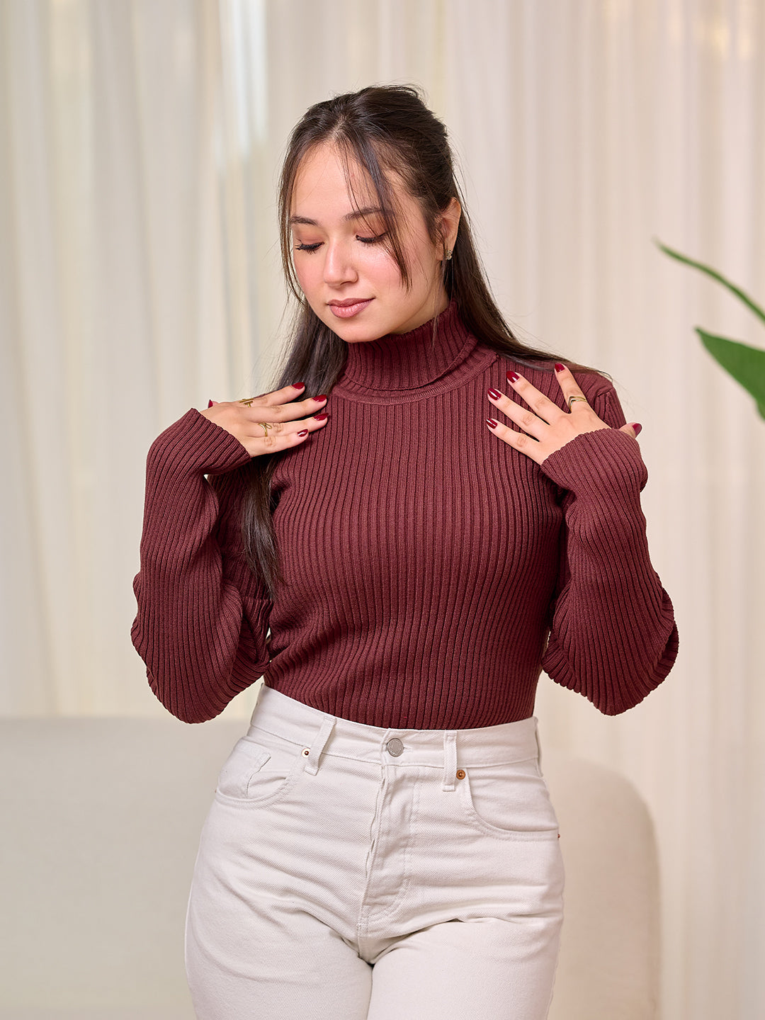 High neckline top- Brown