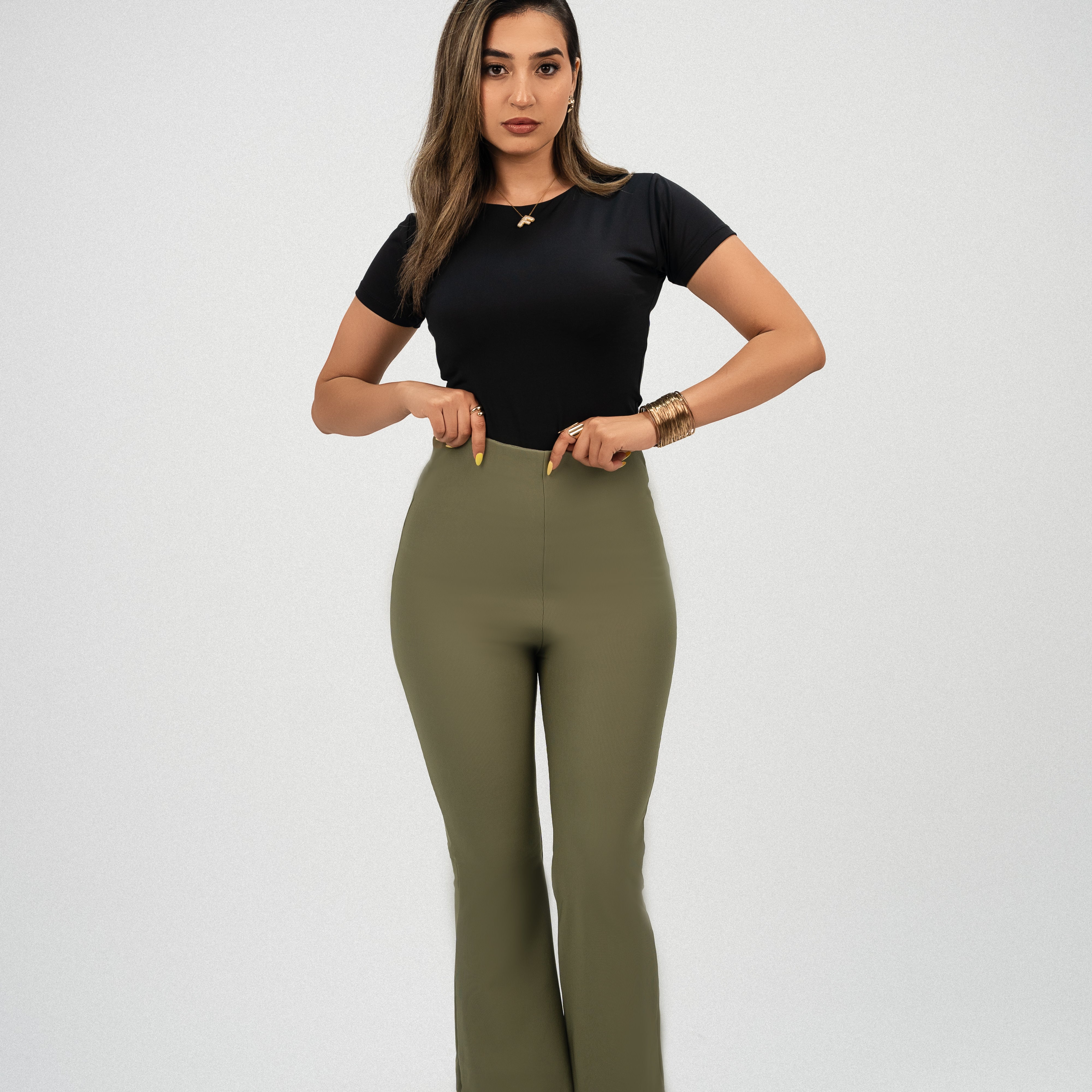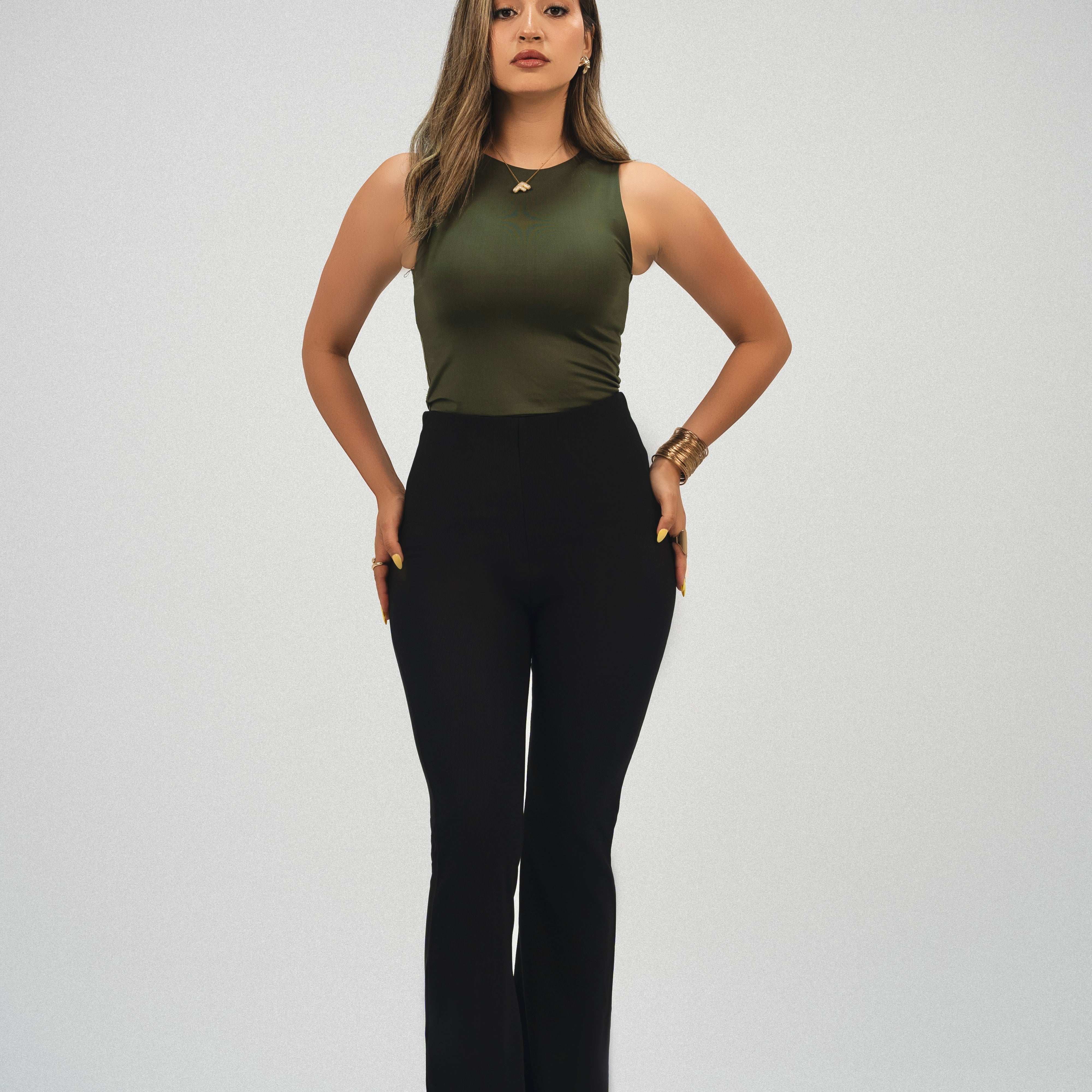 High-Waisted Flare pants-olive