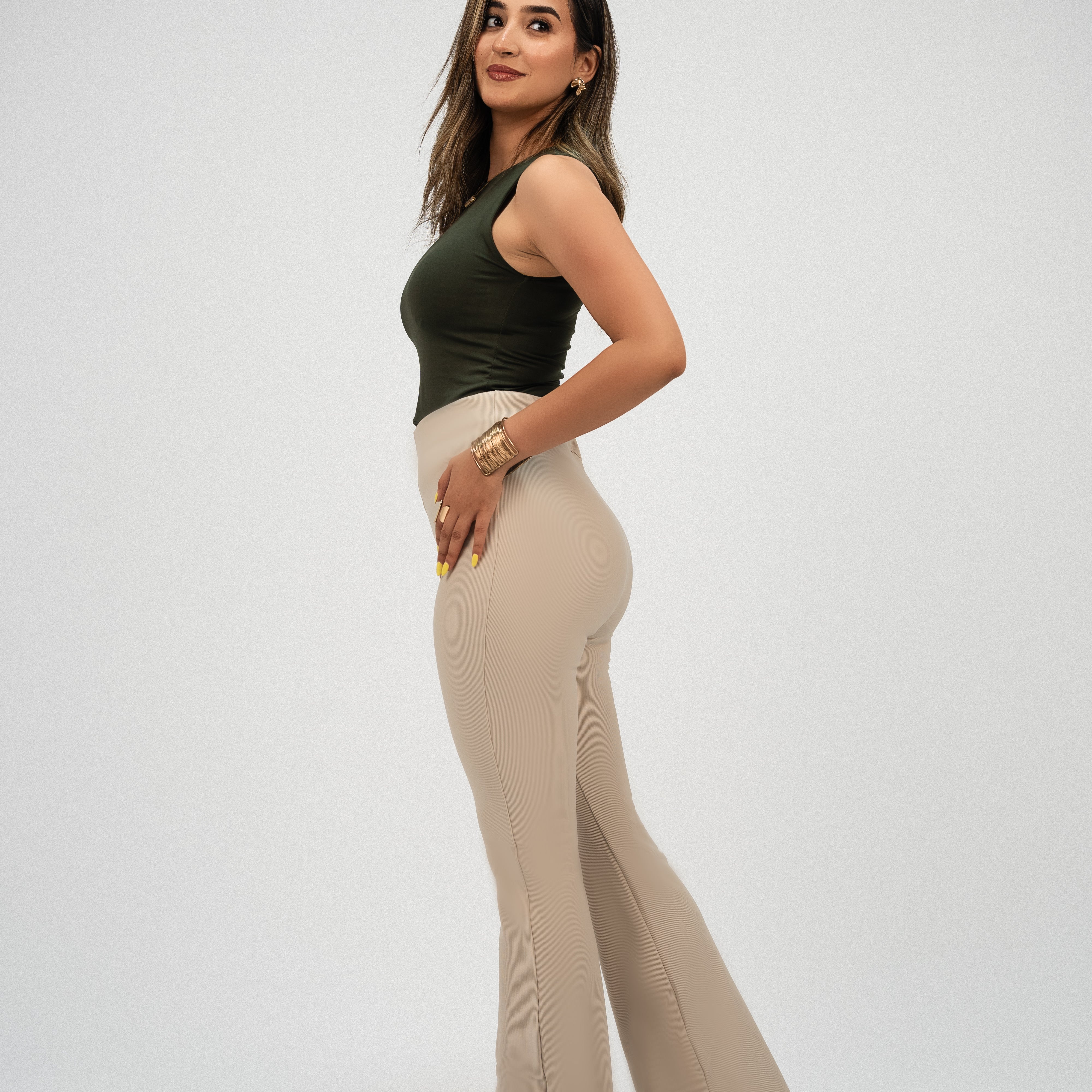 High-Waisted Flare pants-beige