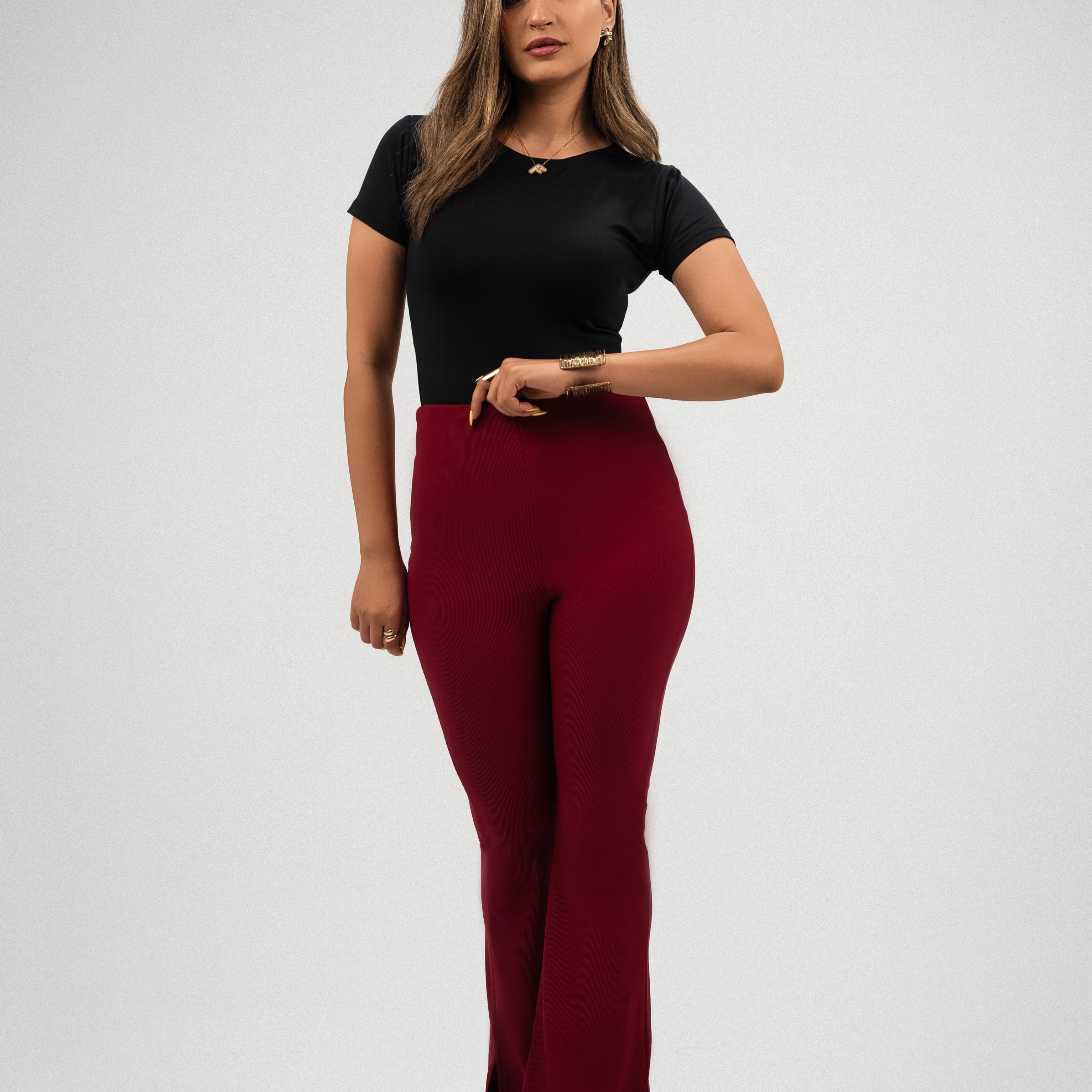 High-Waisted Flare pants-burgundy