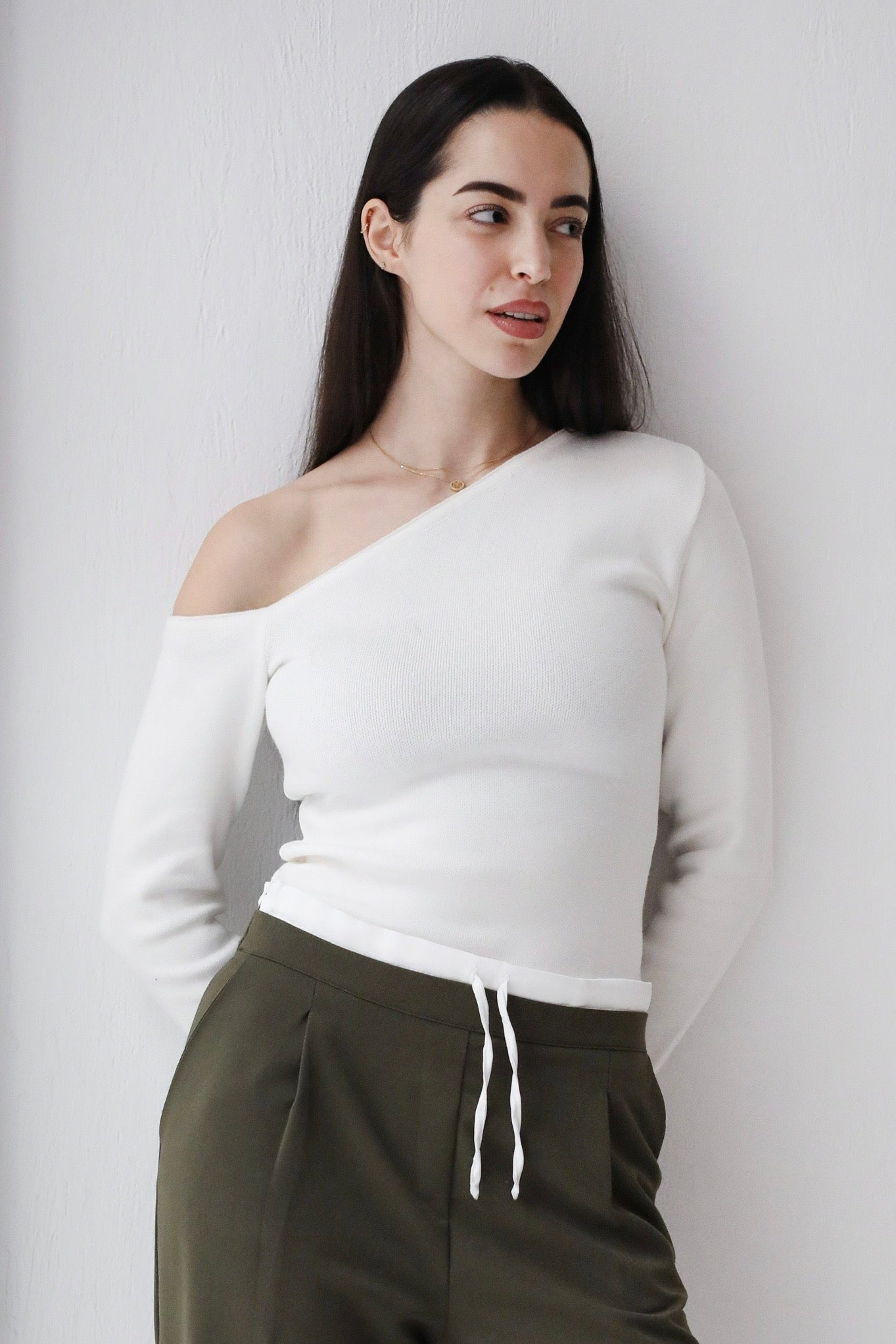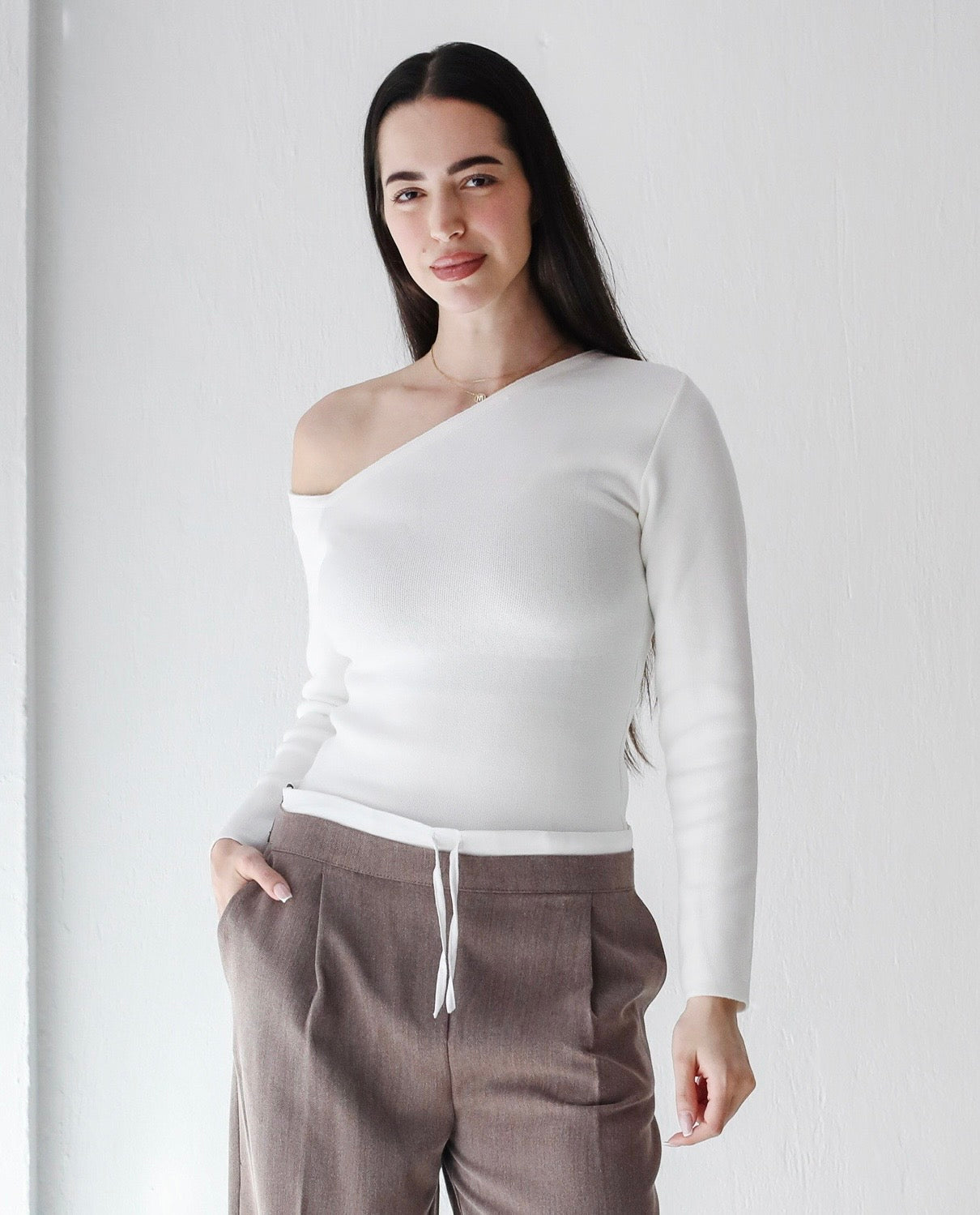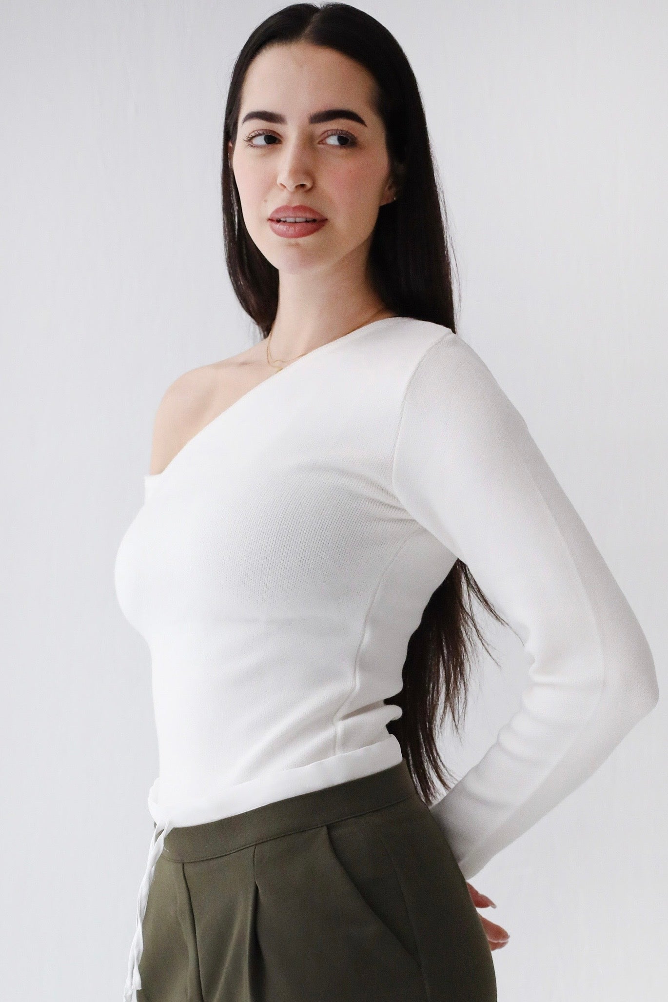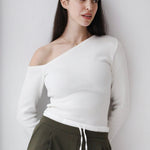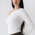 One shoulder basic top -white