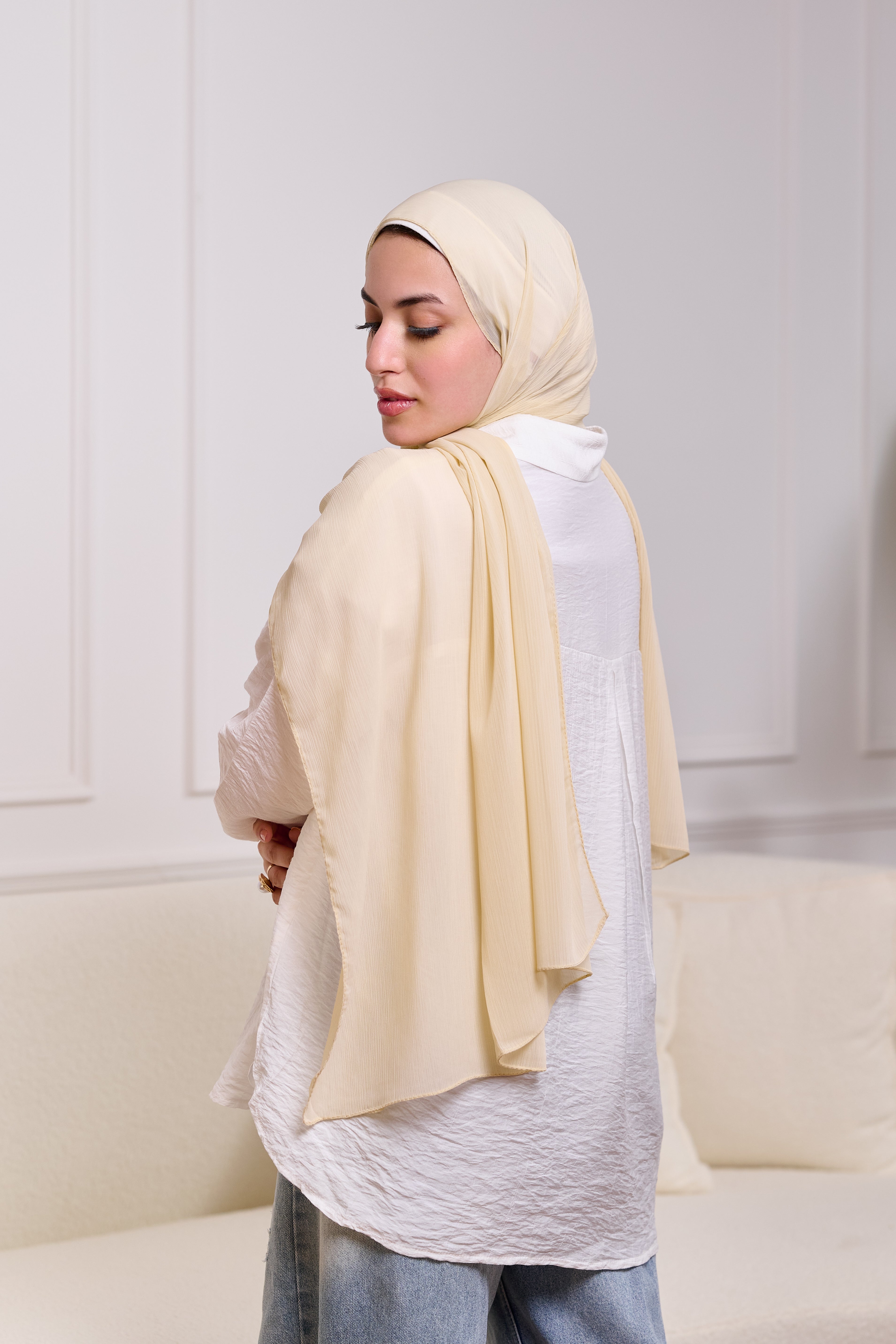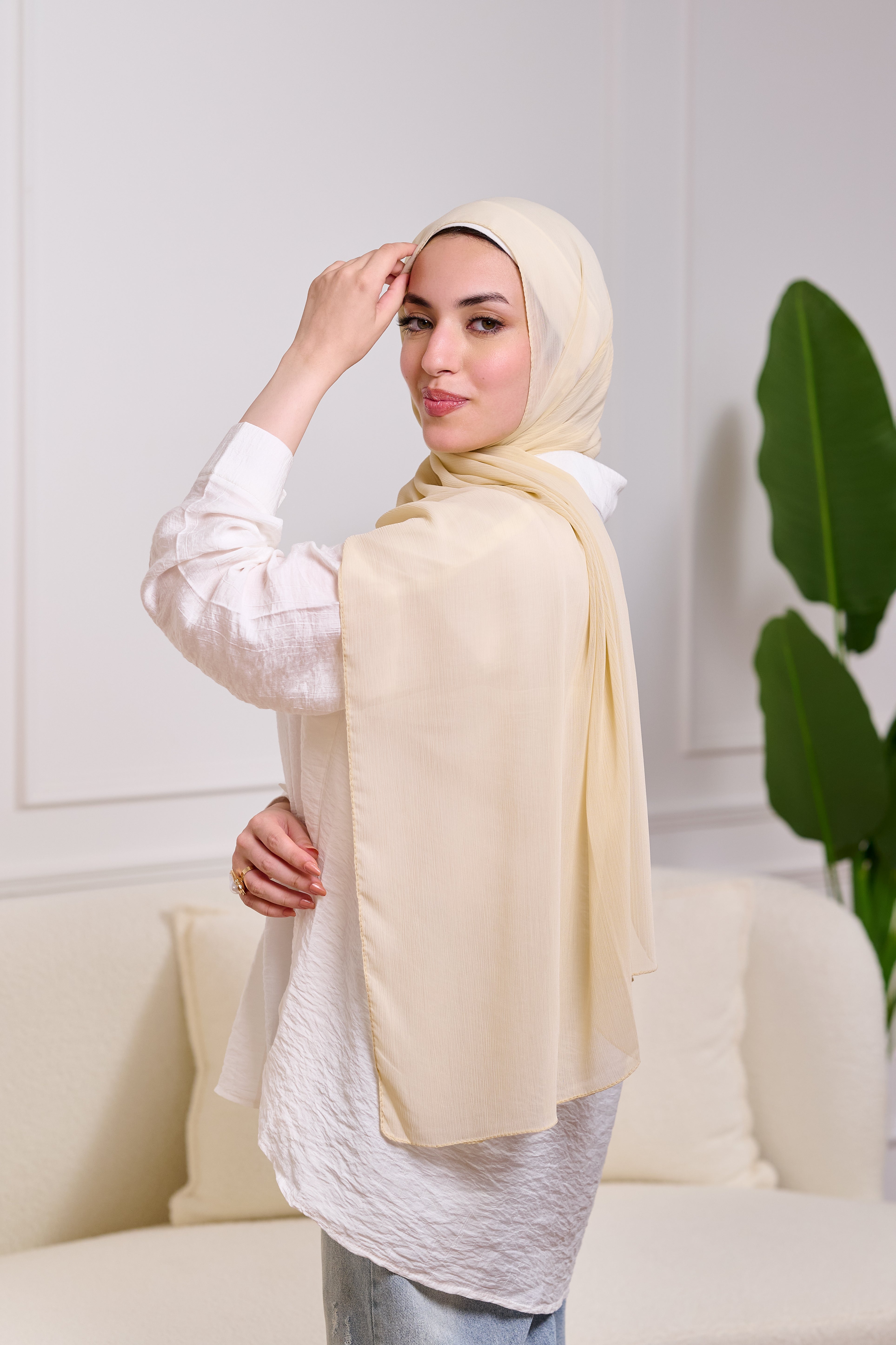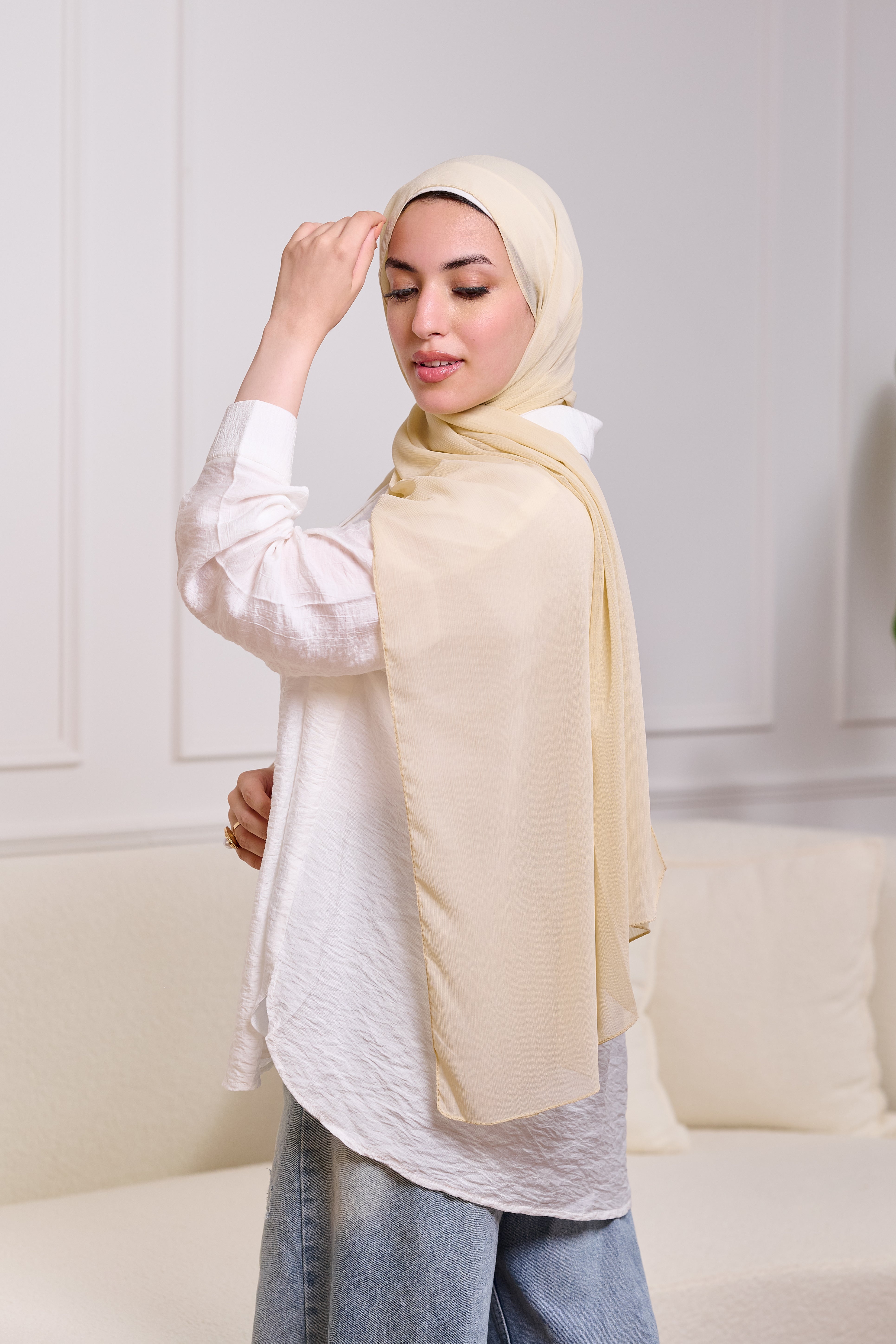 PLAIN CHIFFON SCARF-CREAM