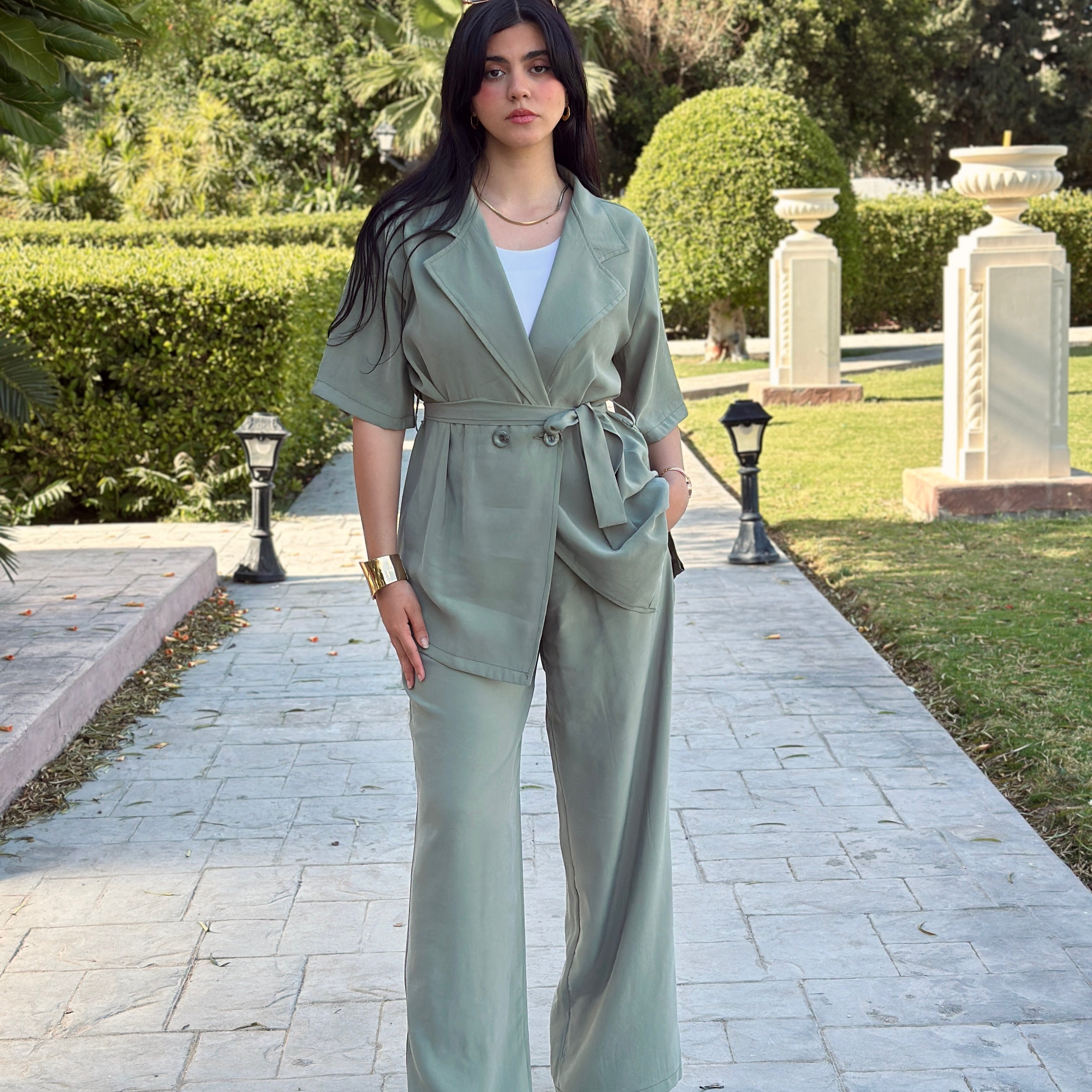 Short sleeve set in olive