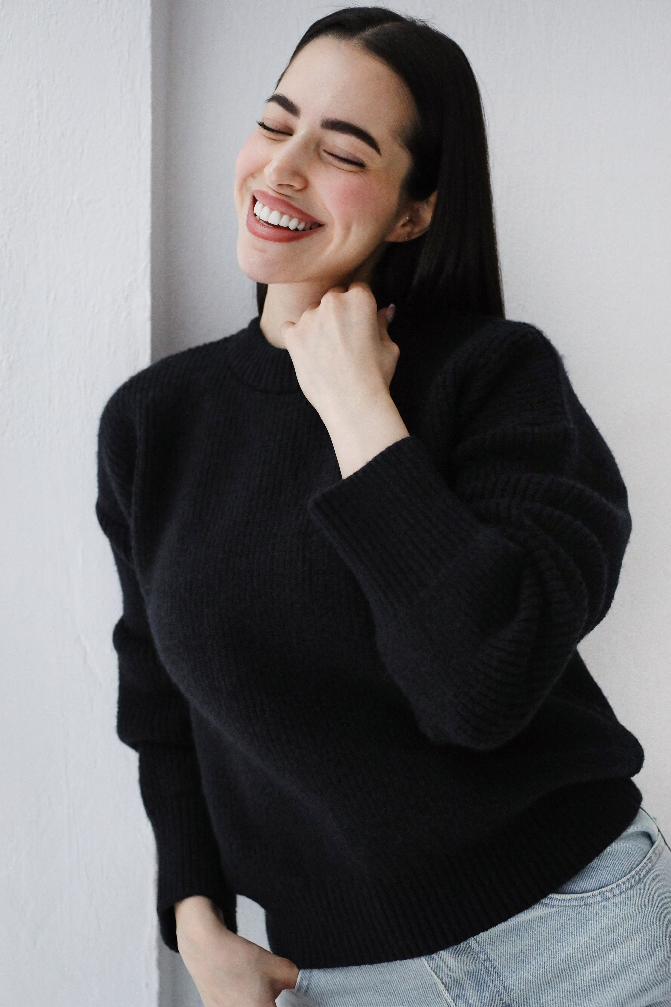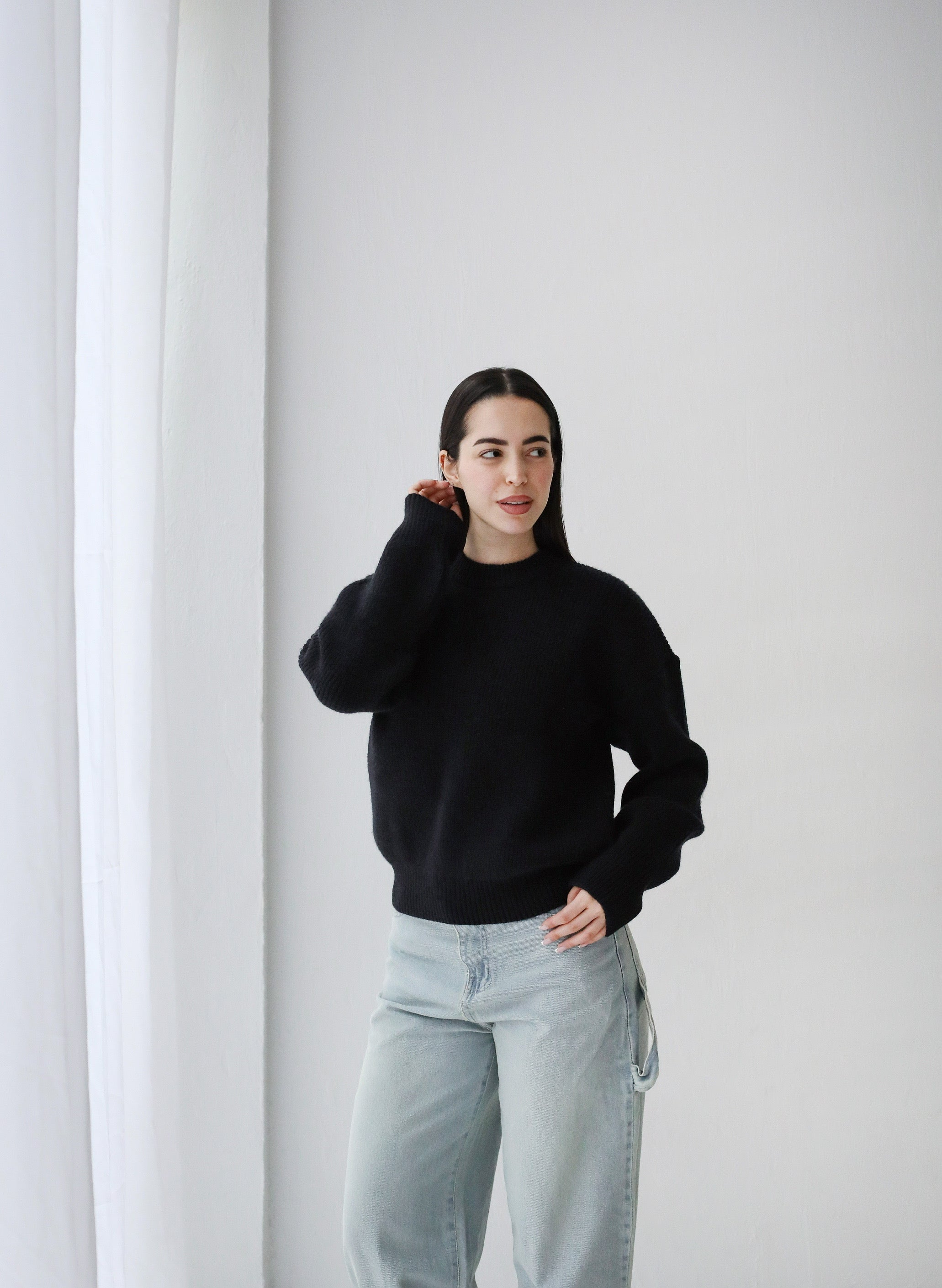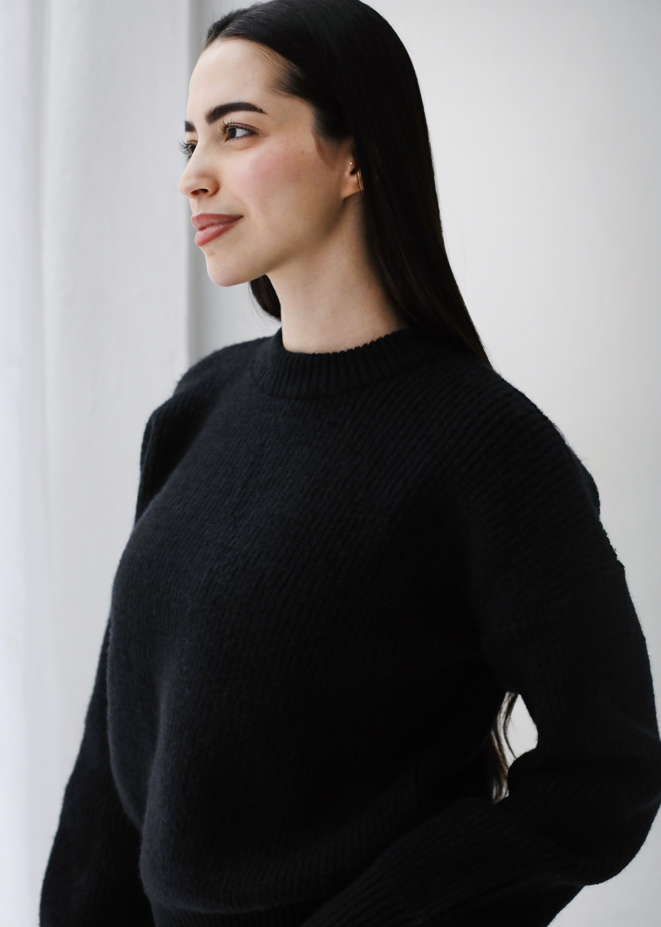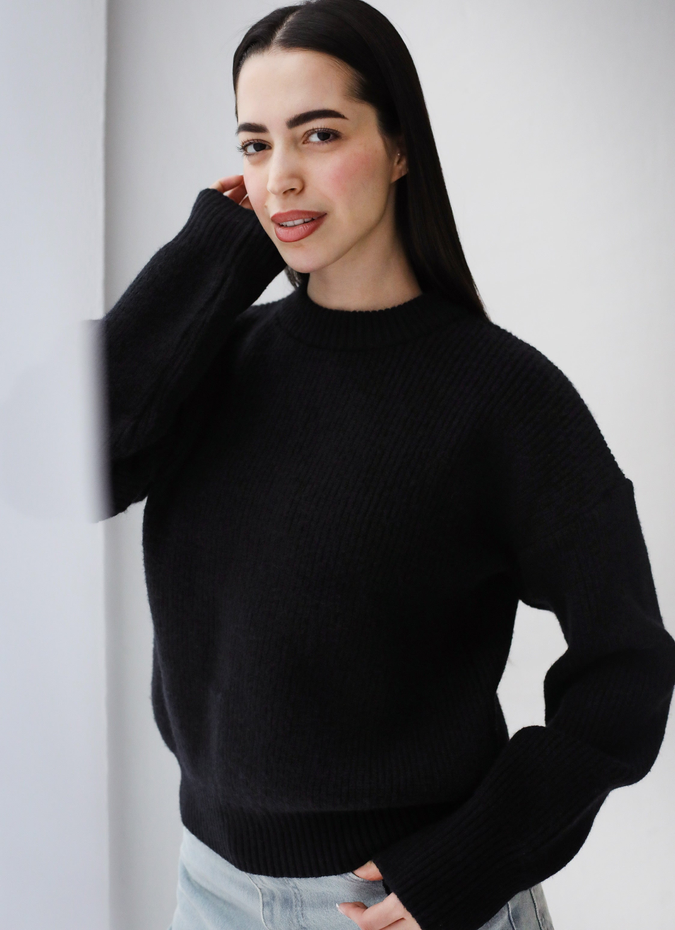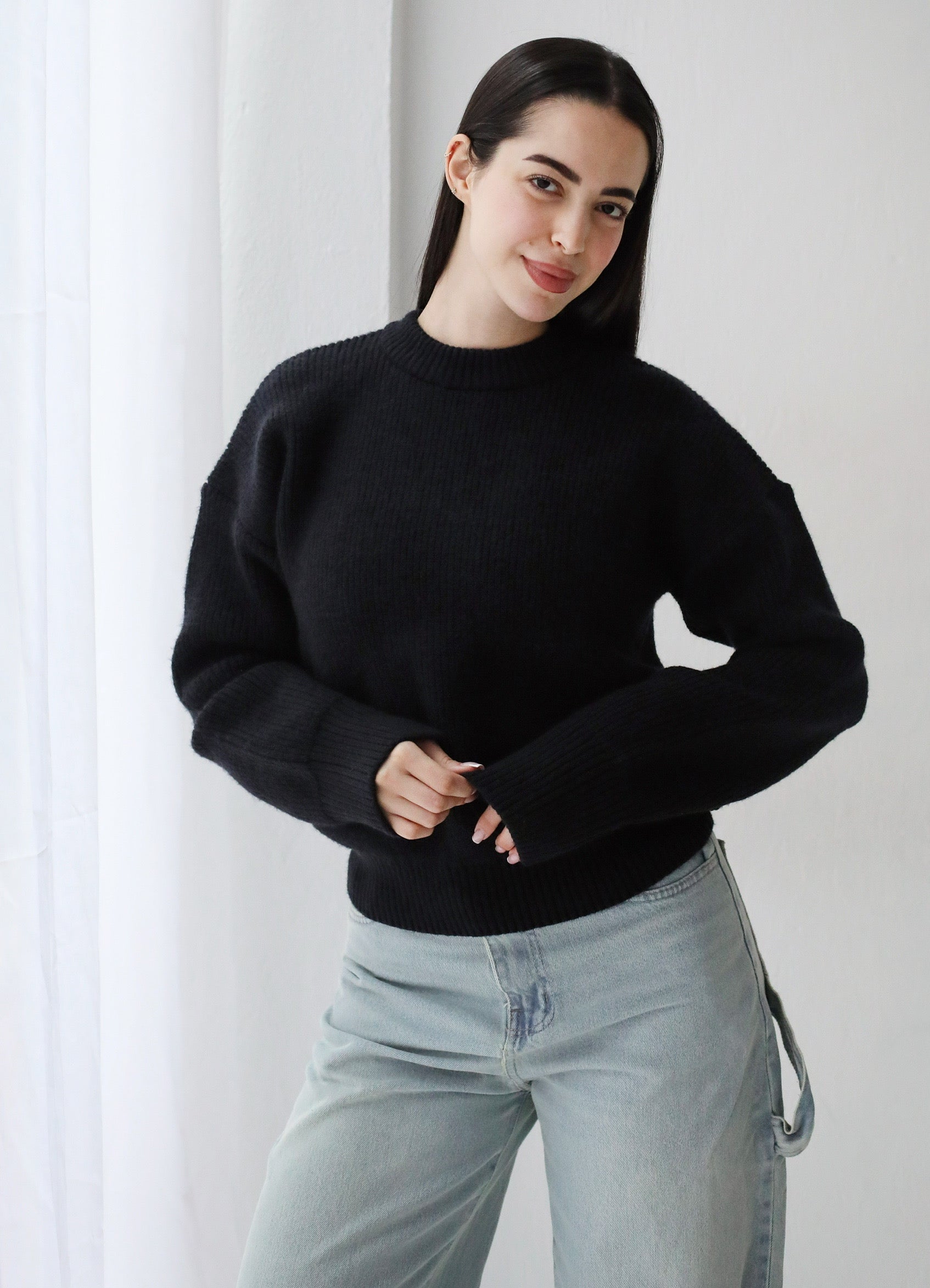 Soft Rib Knit Sweater- Black