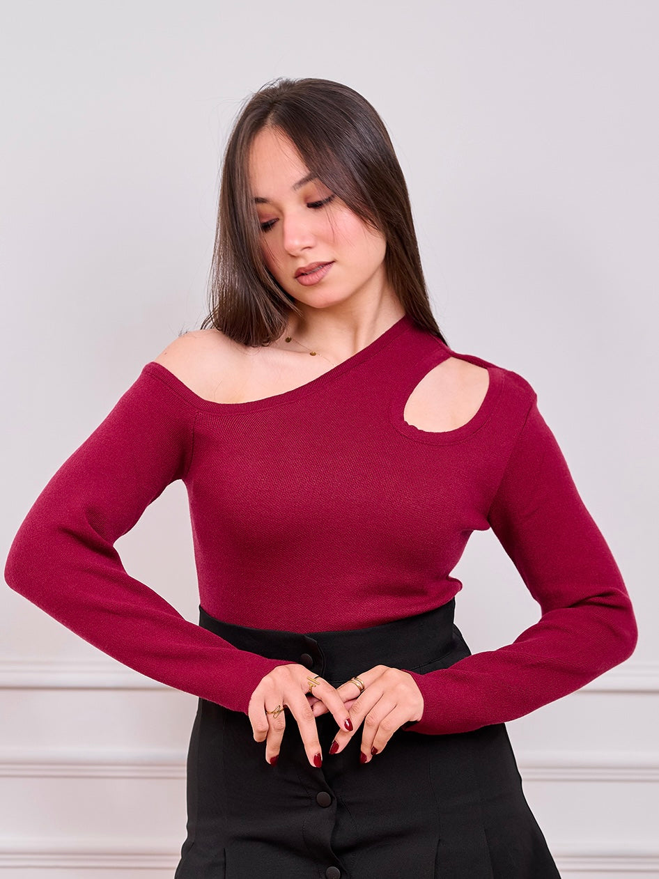 Single Shoulder basic Top - burgundy
