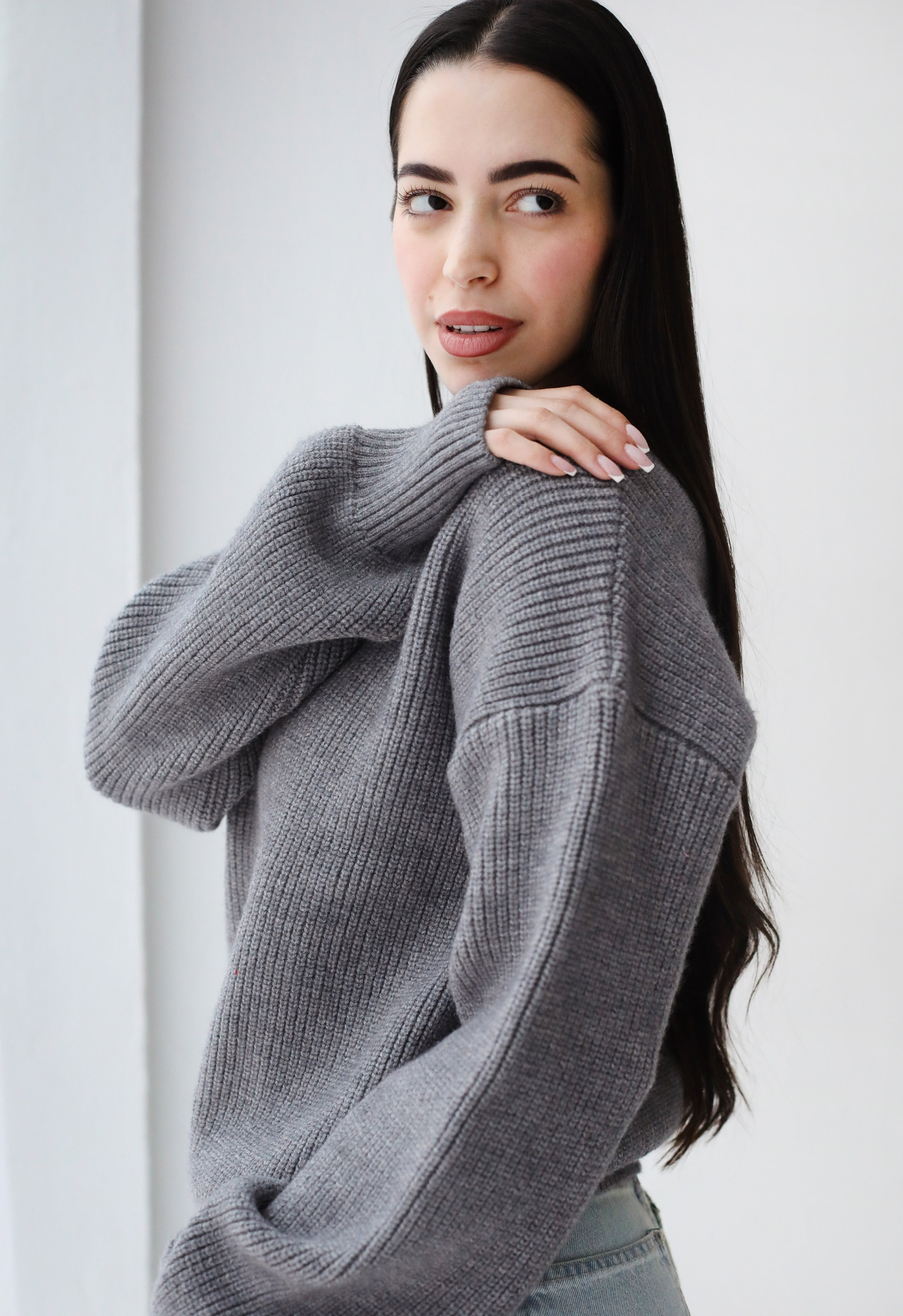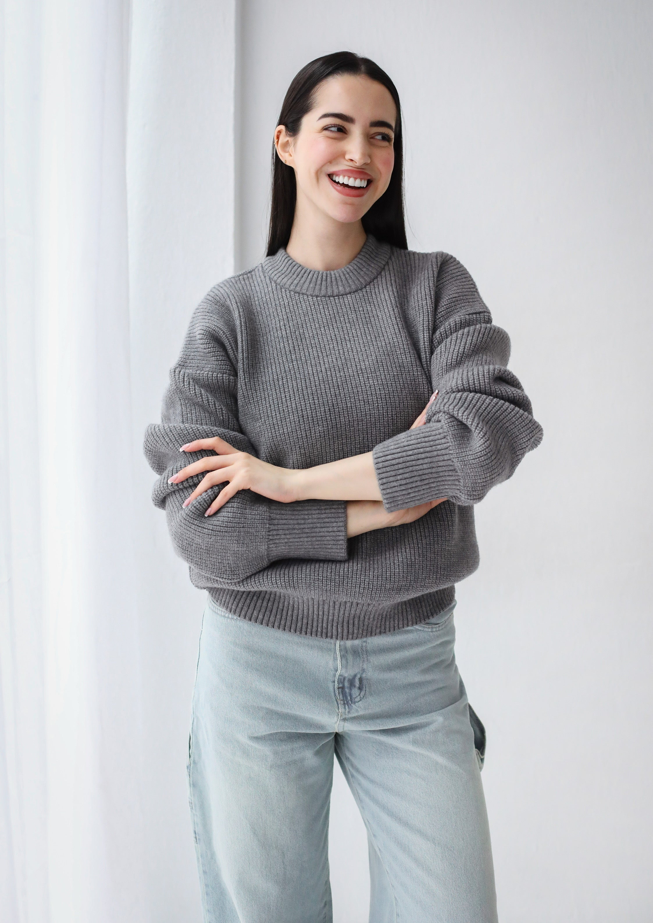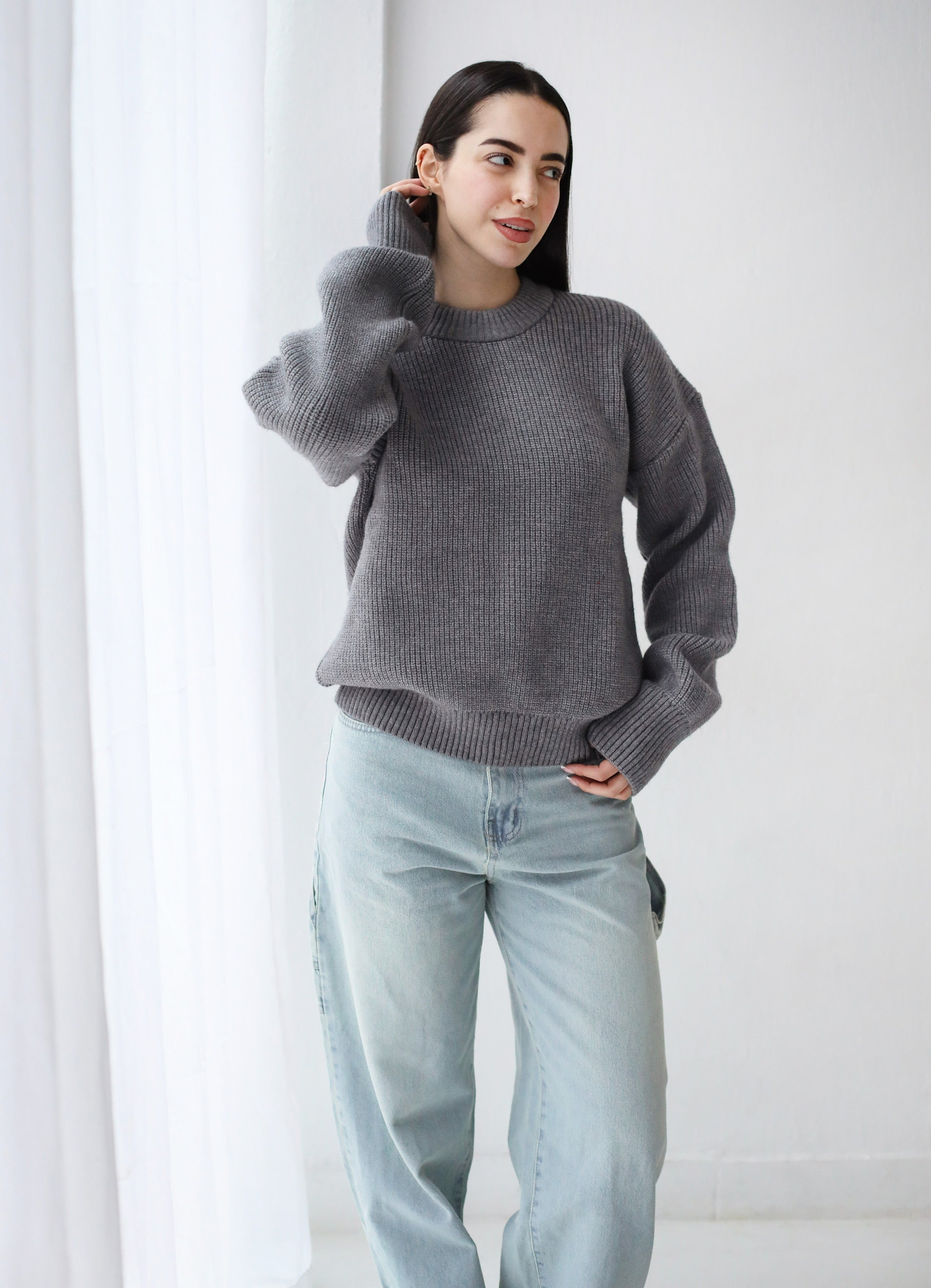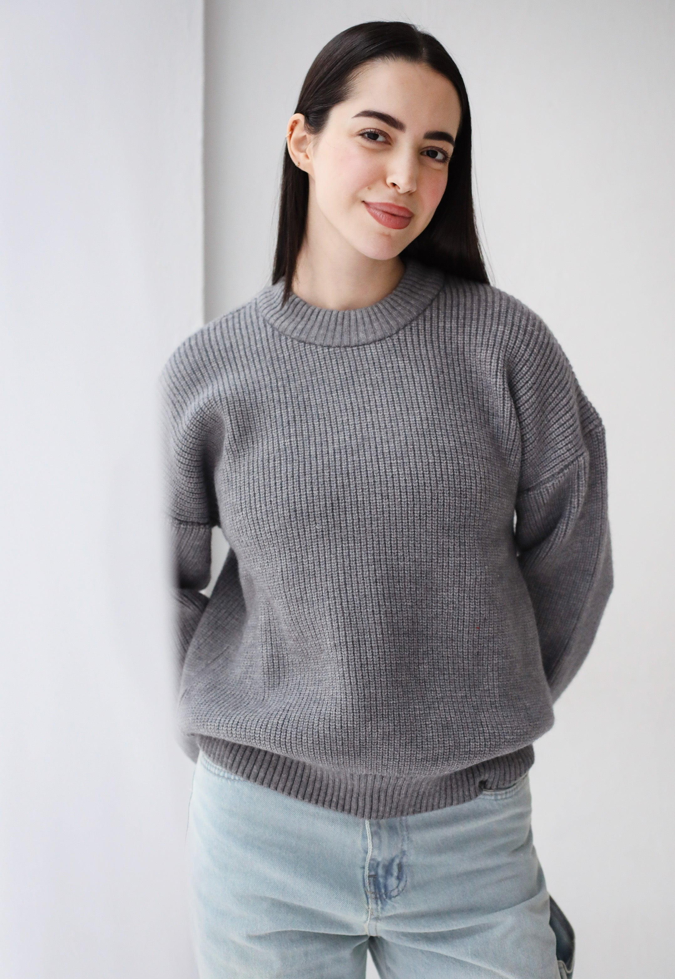 Soft Rib Knit Sweater- Gray