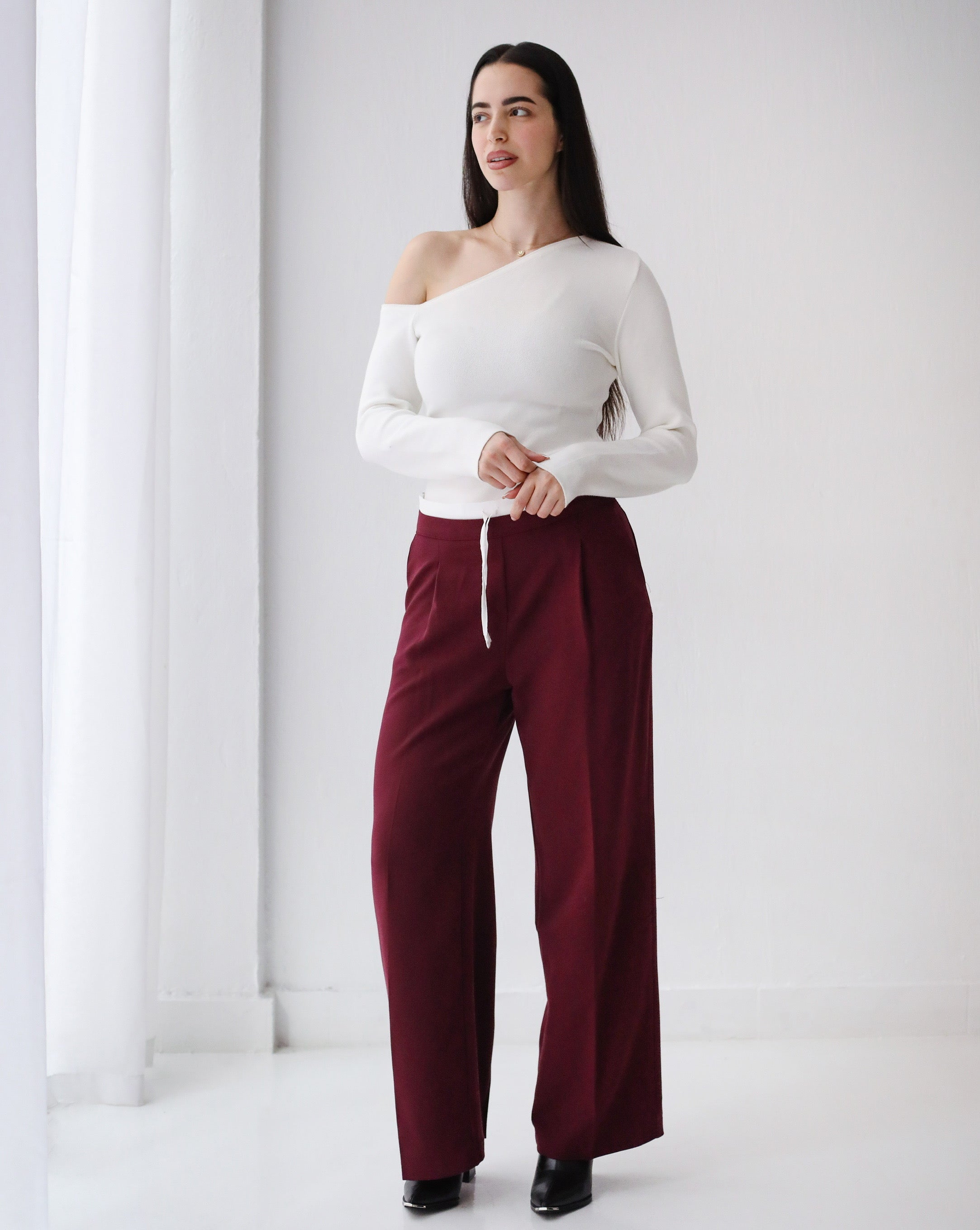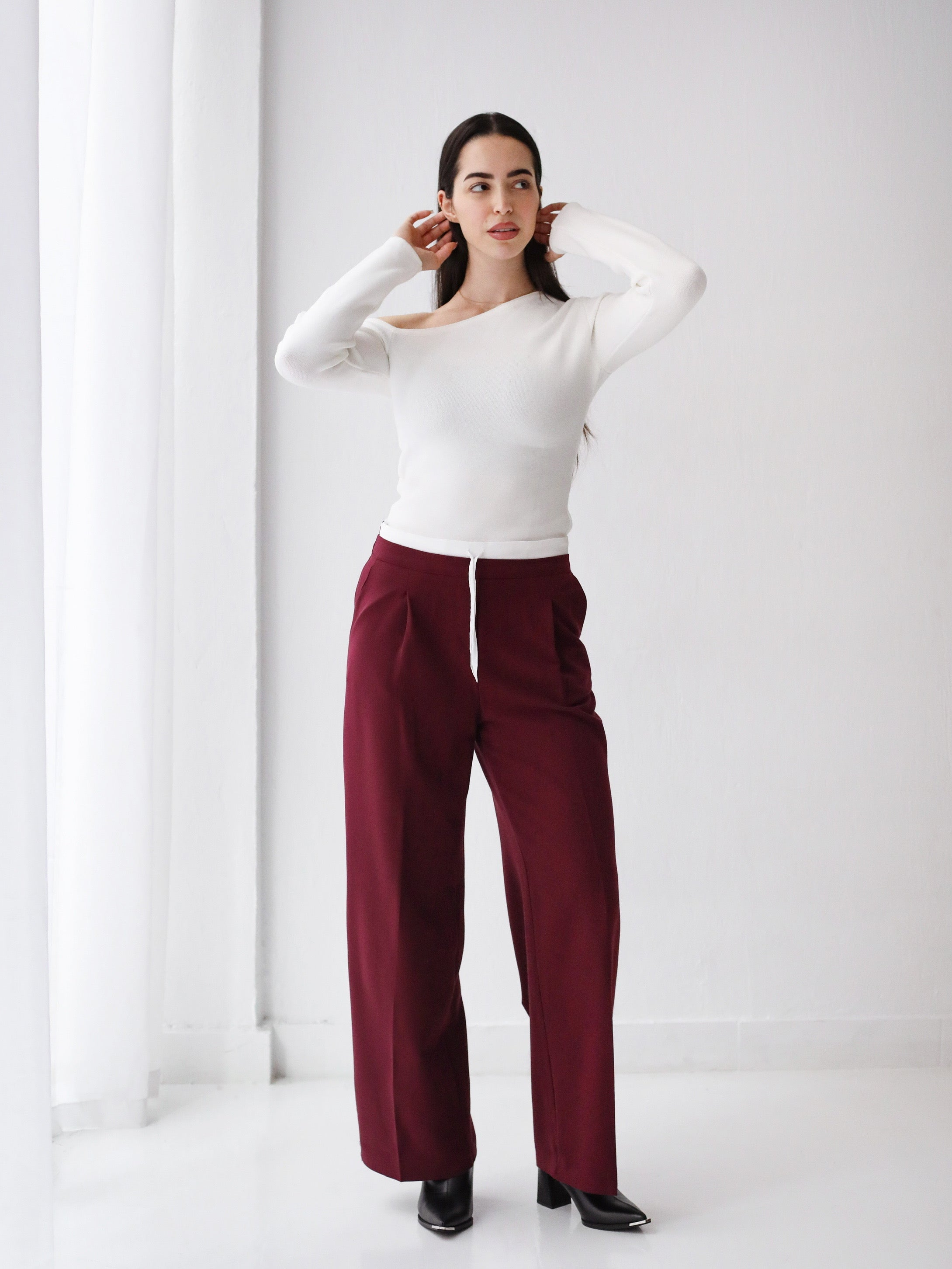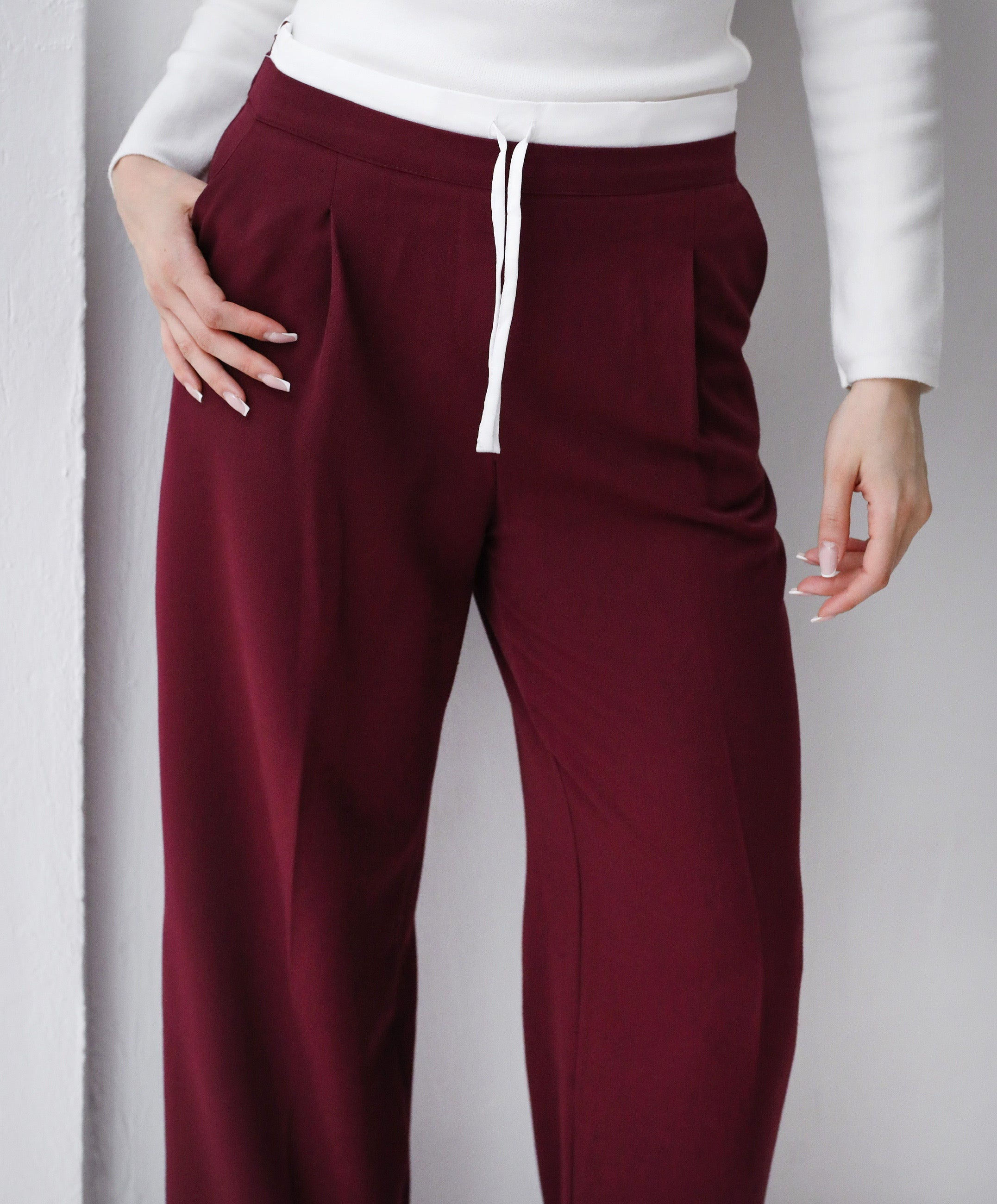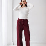 Loose Fit Pants-Burgundy
