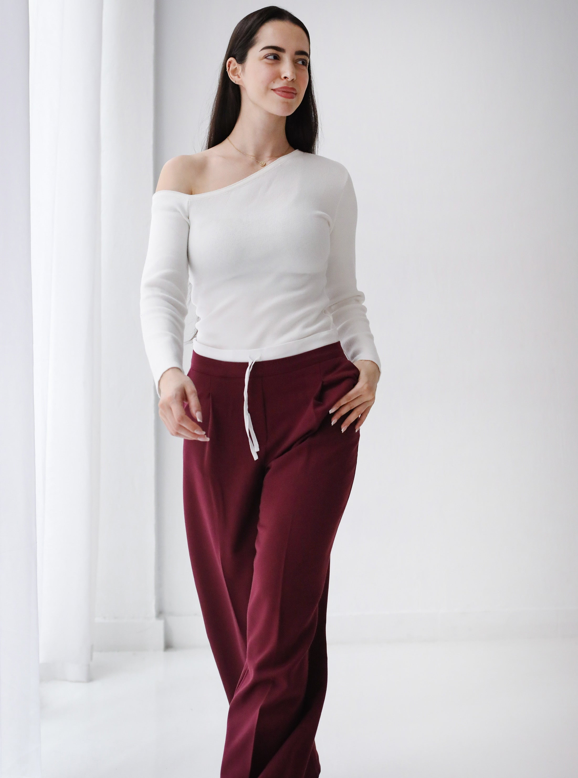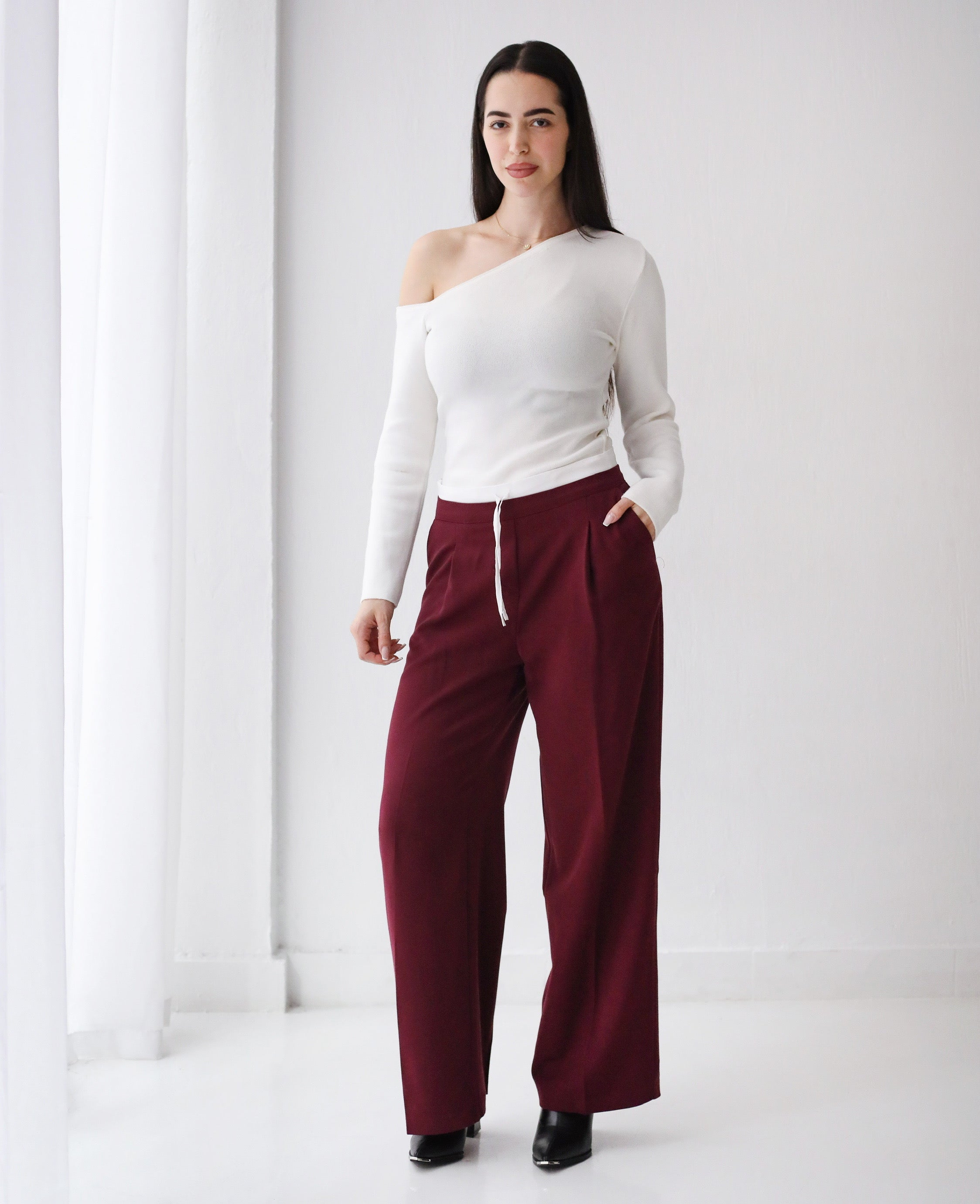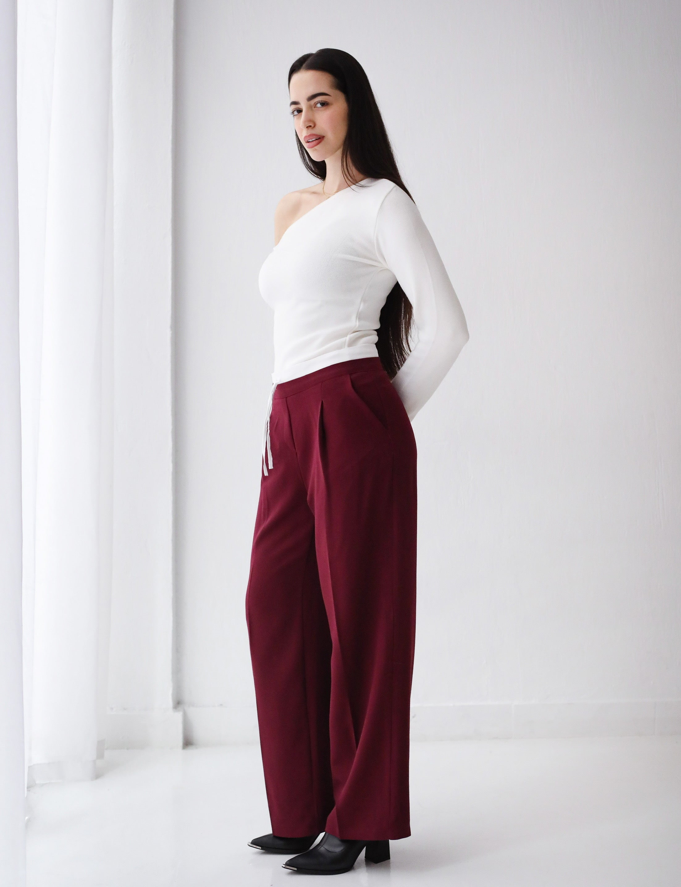 Loose Fit Pants-Burgundy