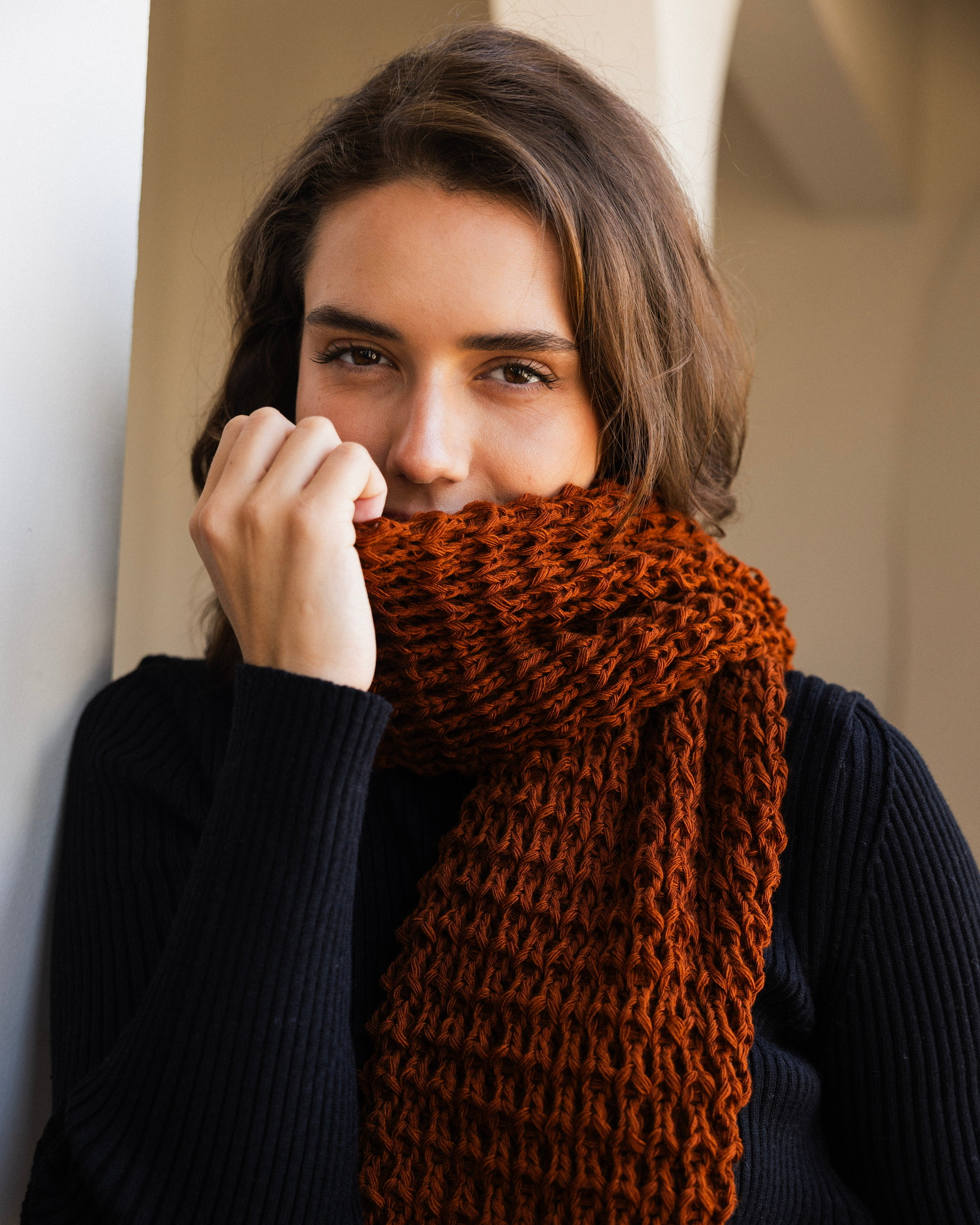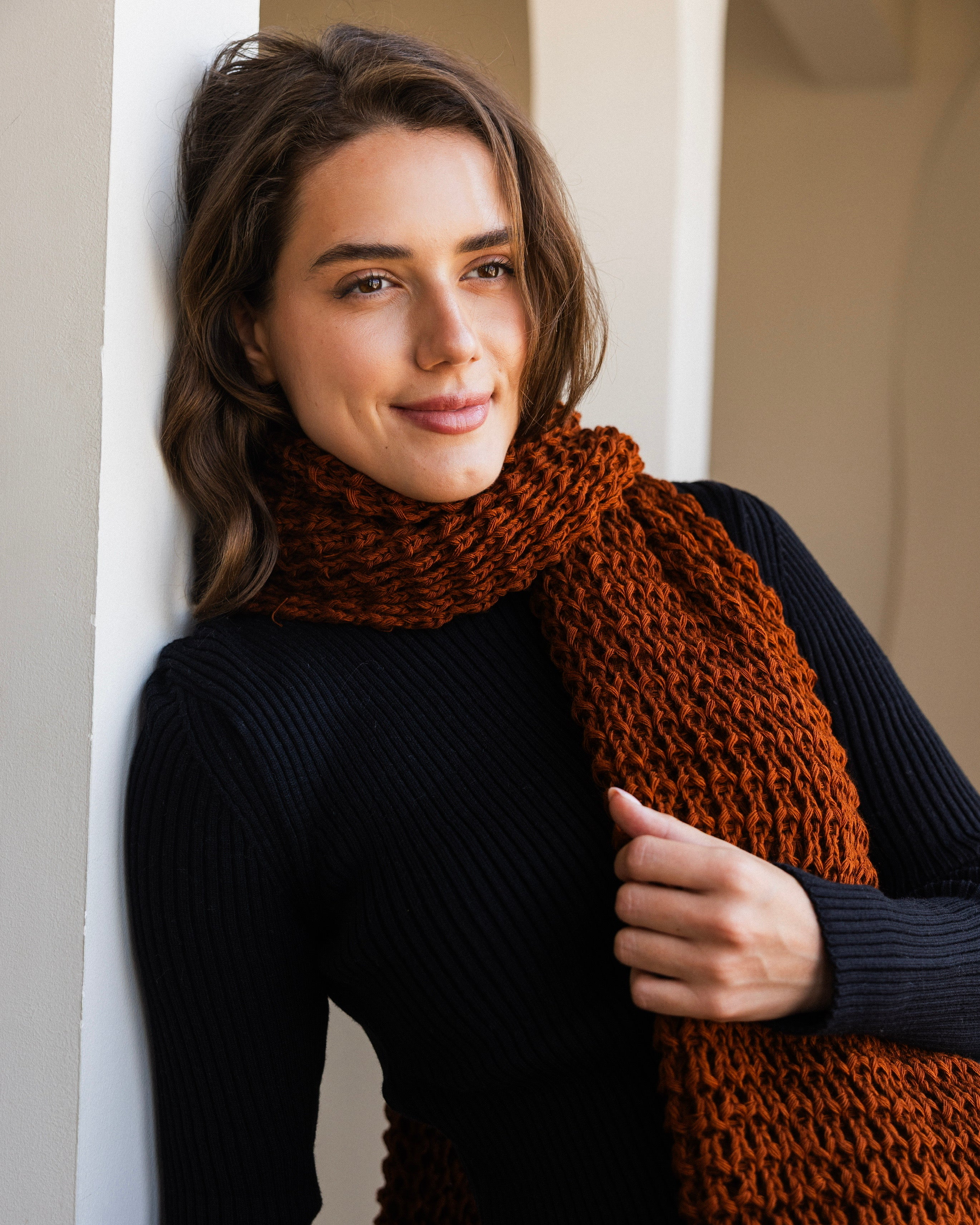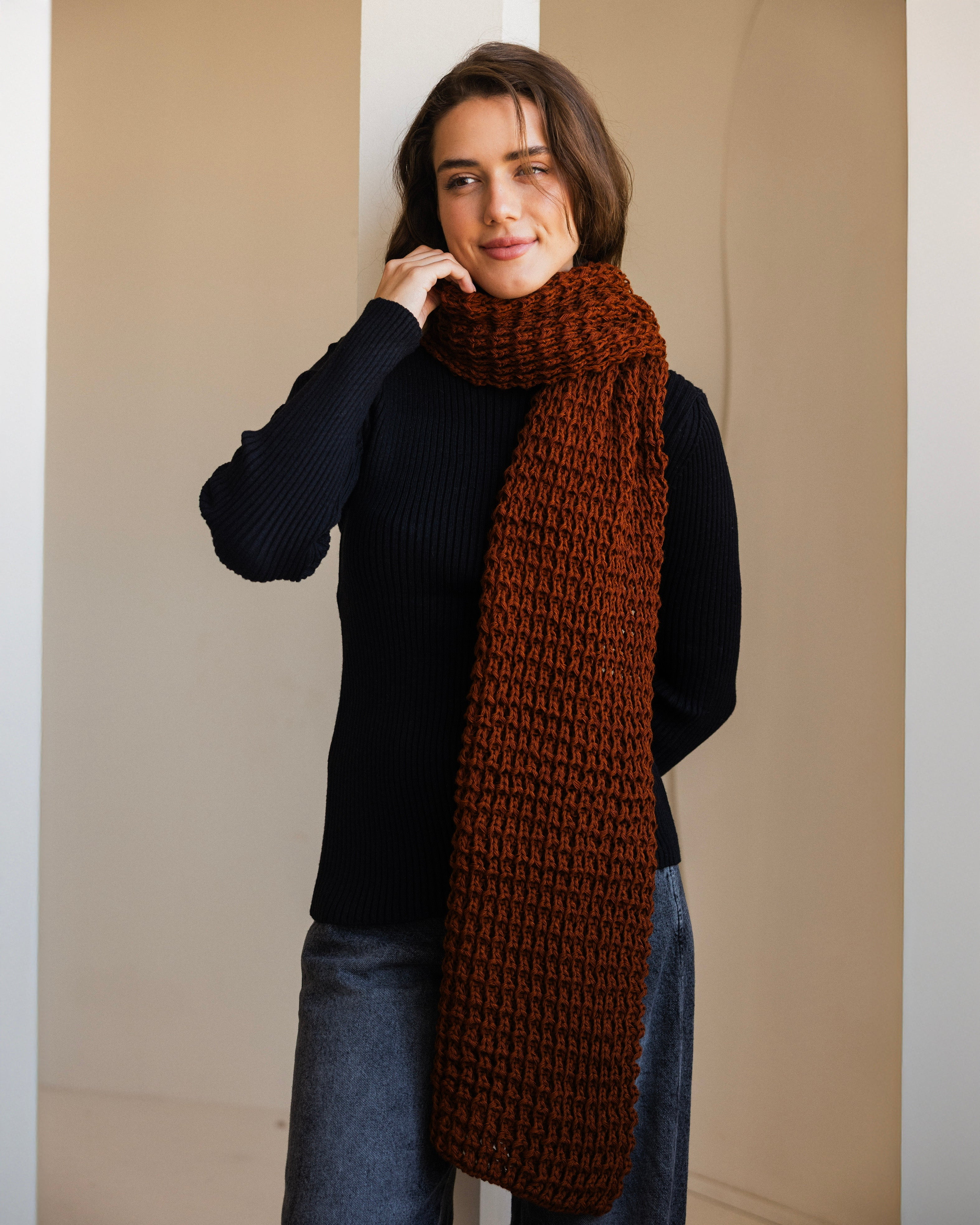 Snow Knit Scarf- Rust